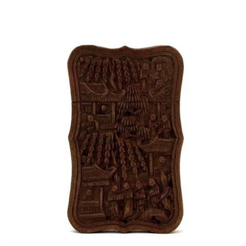 Old (1920) Chinese Export Wood Carved Card Case