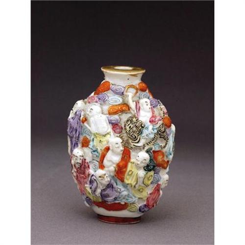 <tr><td>Title:Old Chinese Famille Rose Snuff Bottle Relief</td></tr>