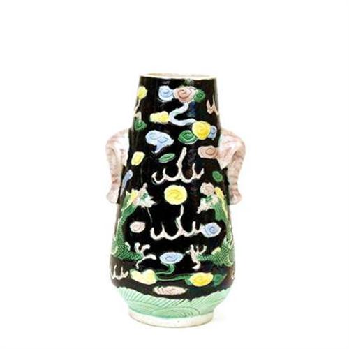 Old (1920's) Chinese Famille Verte Vase with Dragon Elephant Ears