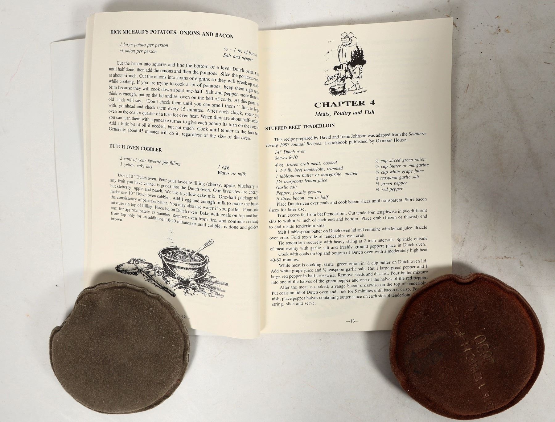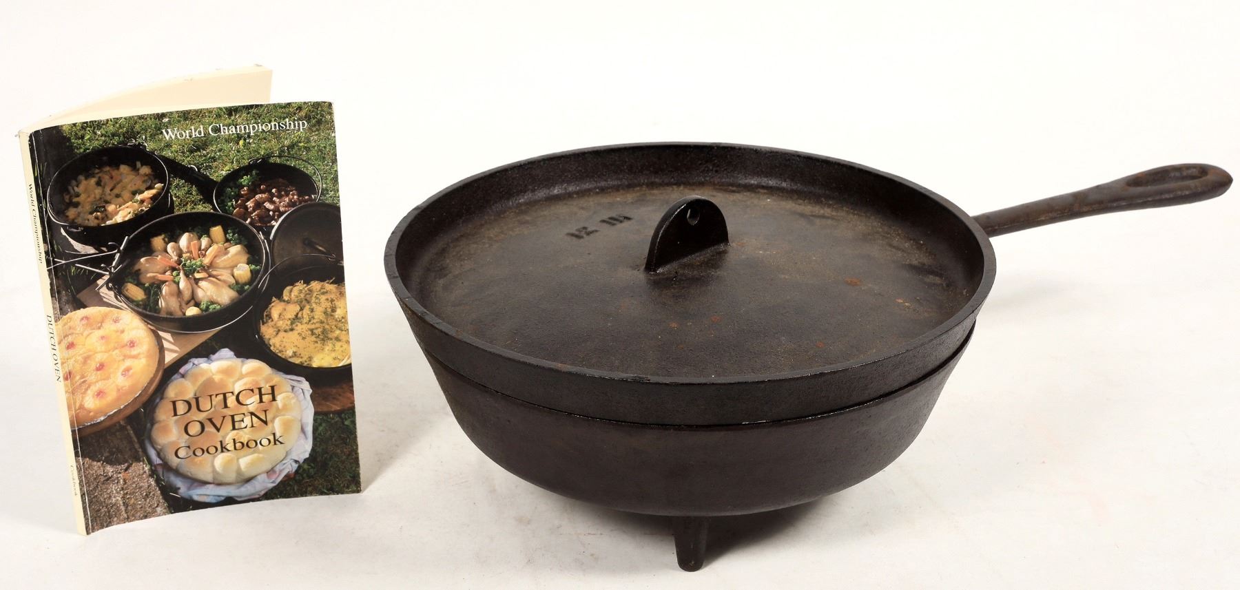 Seasoned and ready for your supper out on the range. 12" diameter. Comes with Dutch Oven Cookbook.