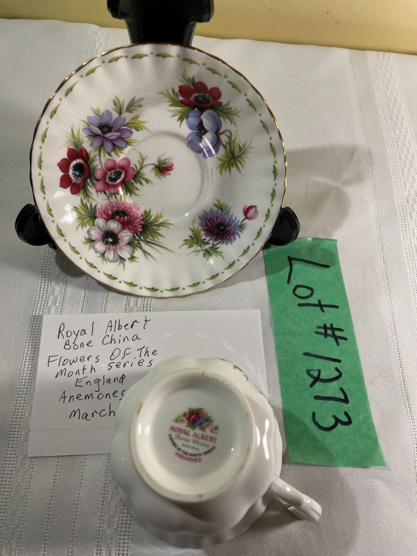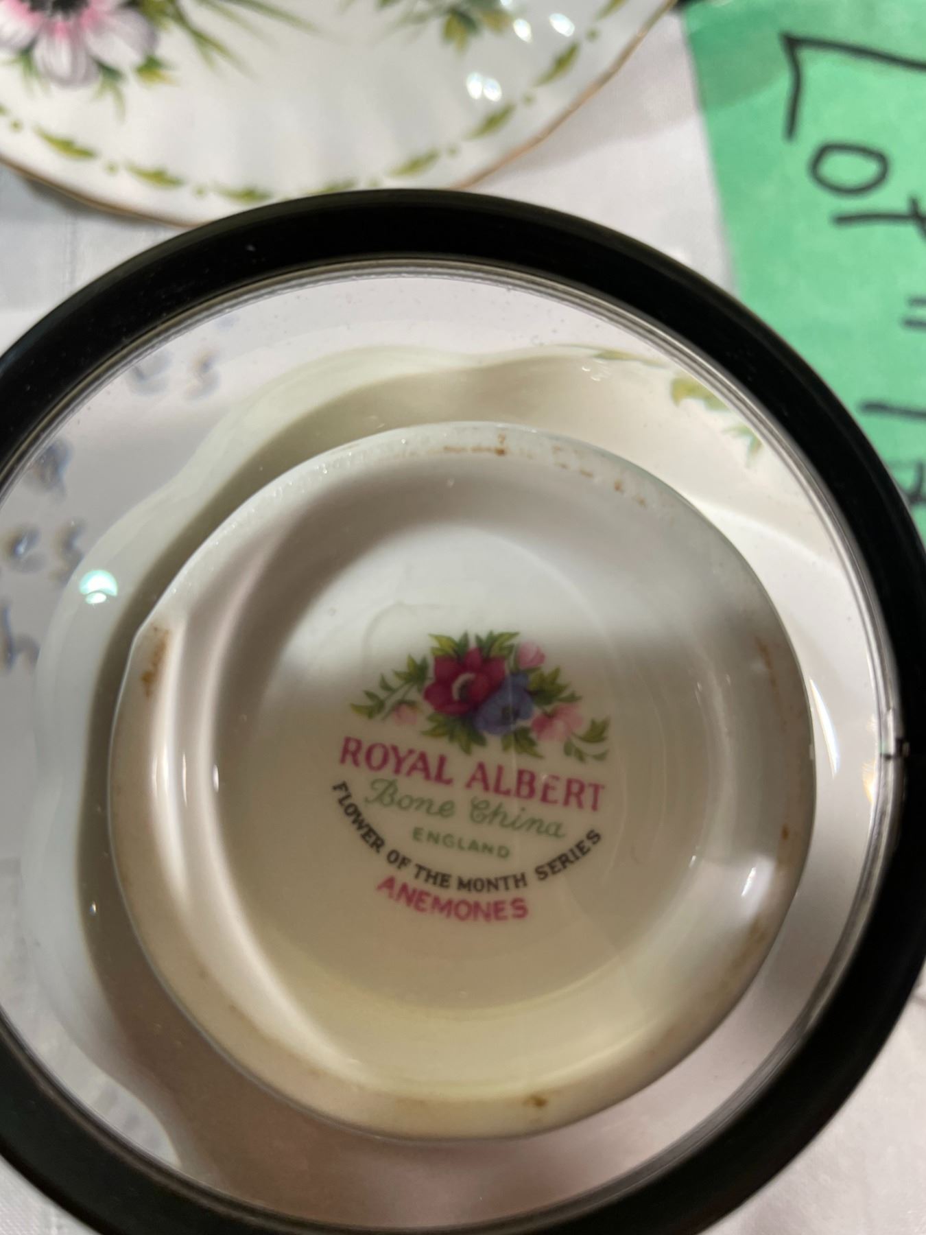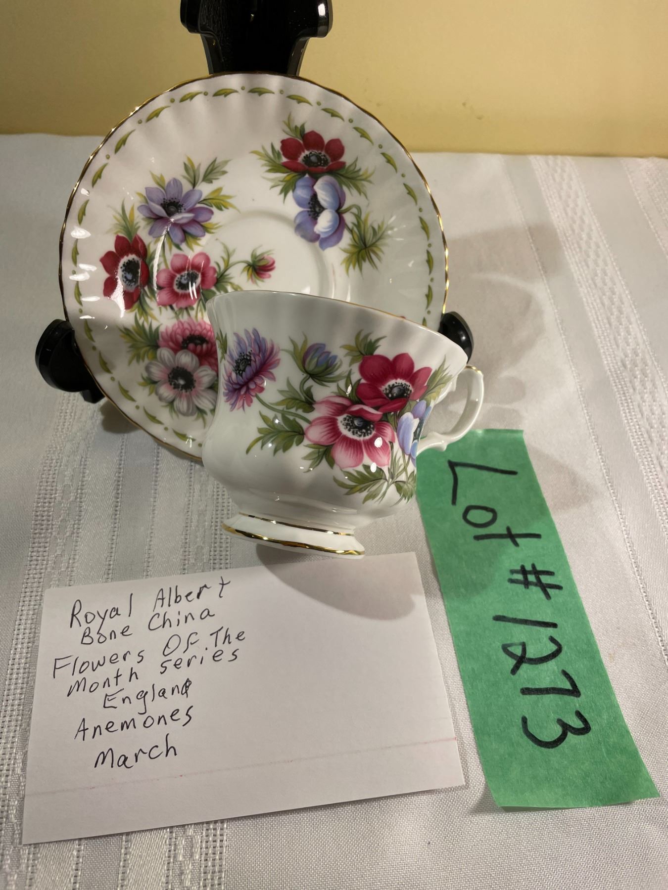 (2) Sets of Old Country Rose Pattern Royal Albert Bone China England (1) Set of Royal Albert Bone China England tea cup + saucer (1) Set of Royal Albert Bone China Flowers of the month series England - Design Anemones March