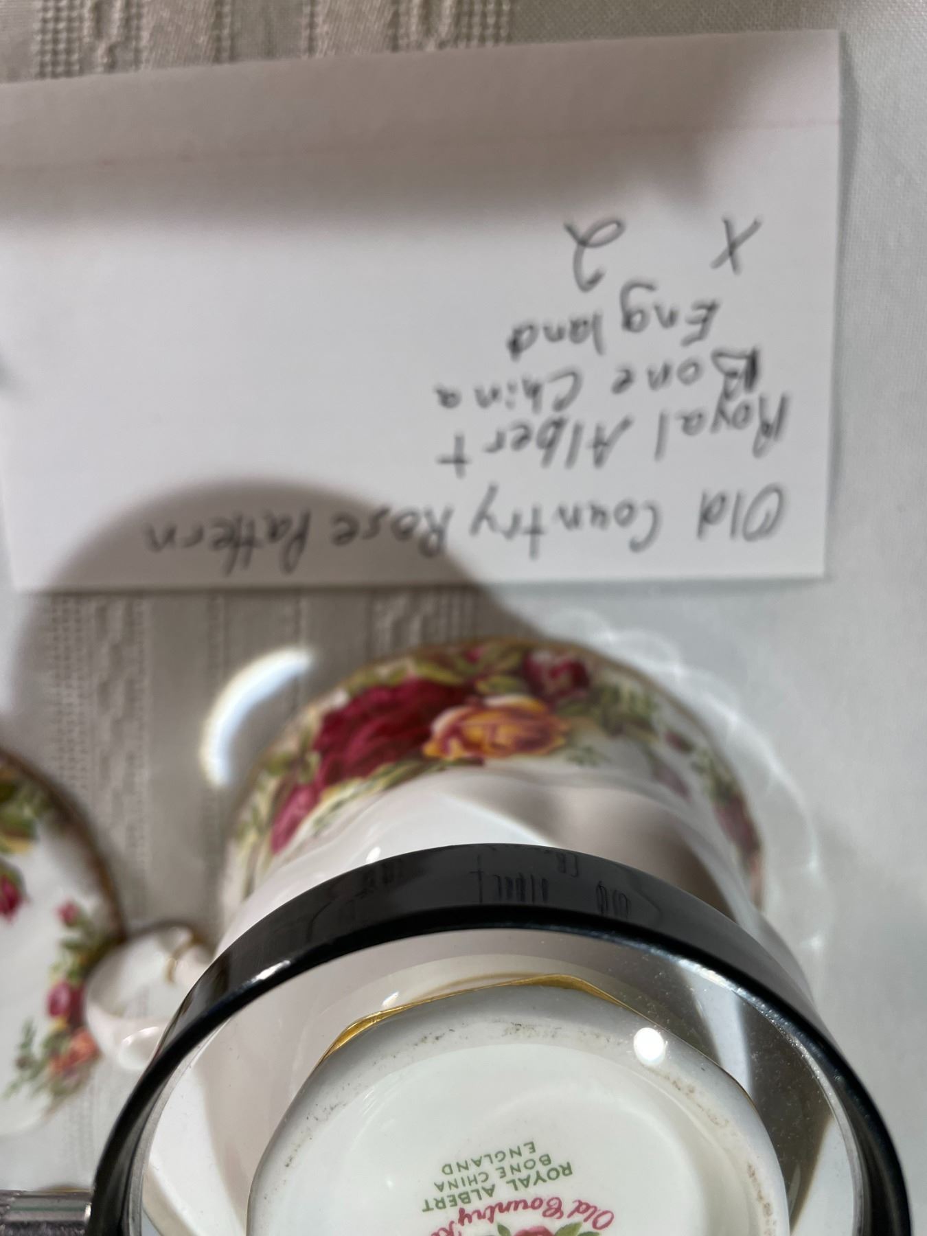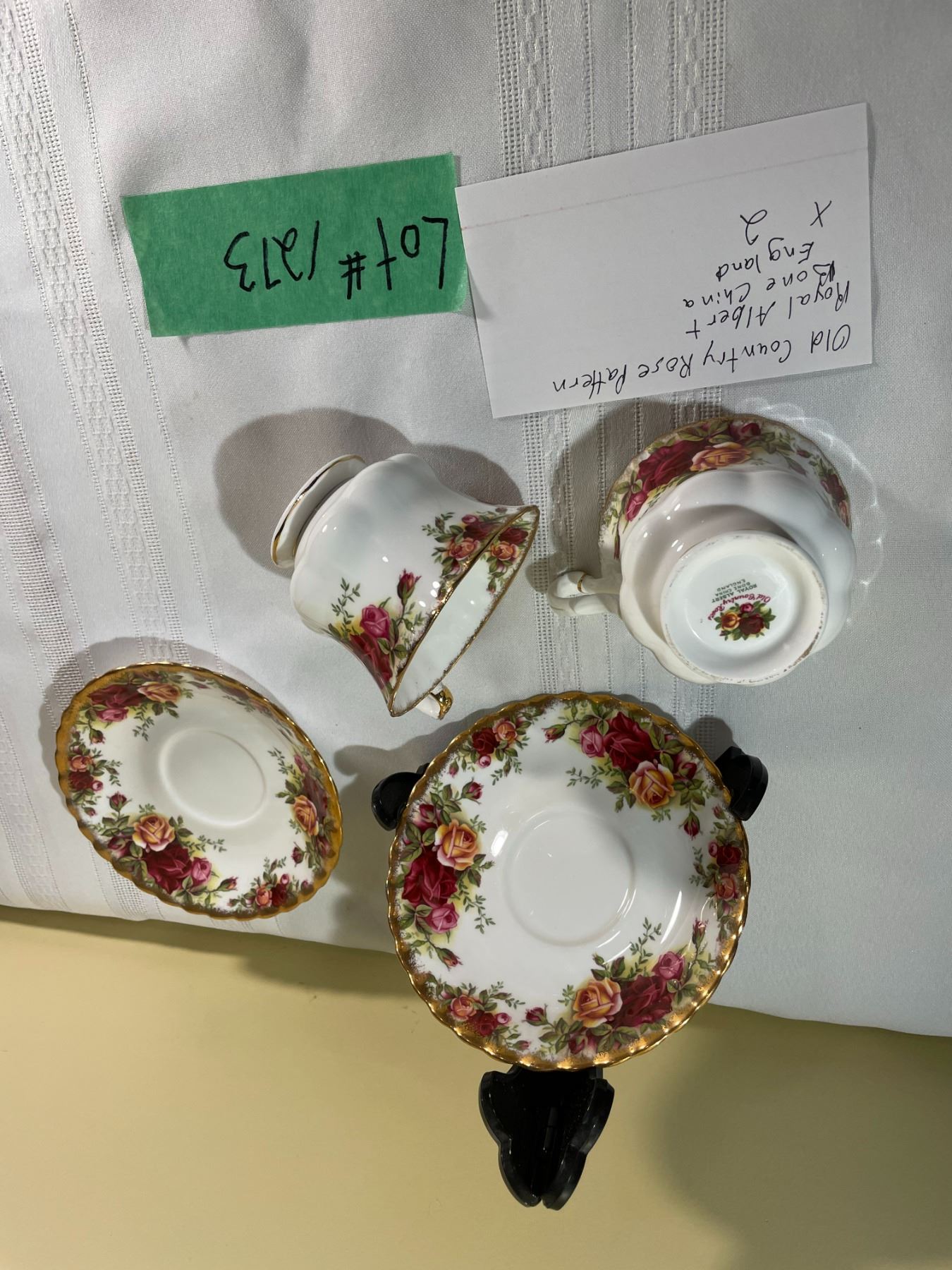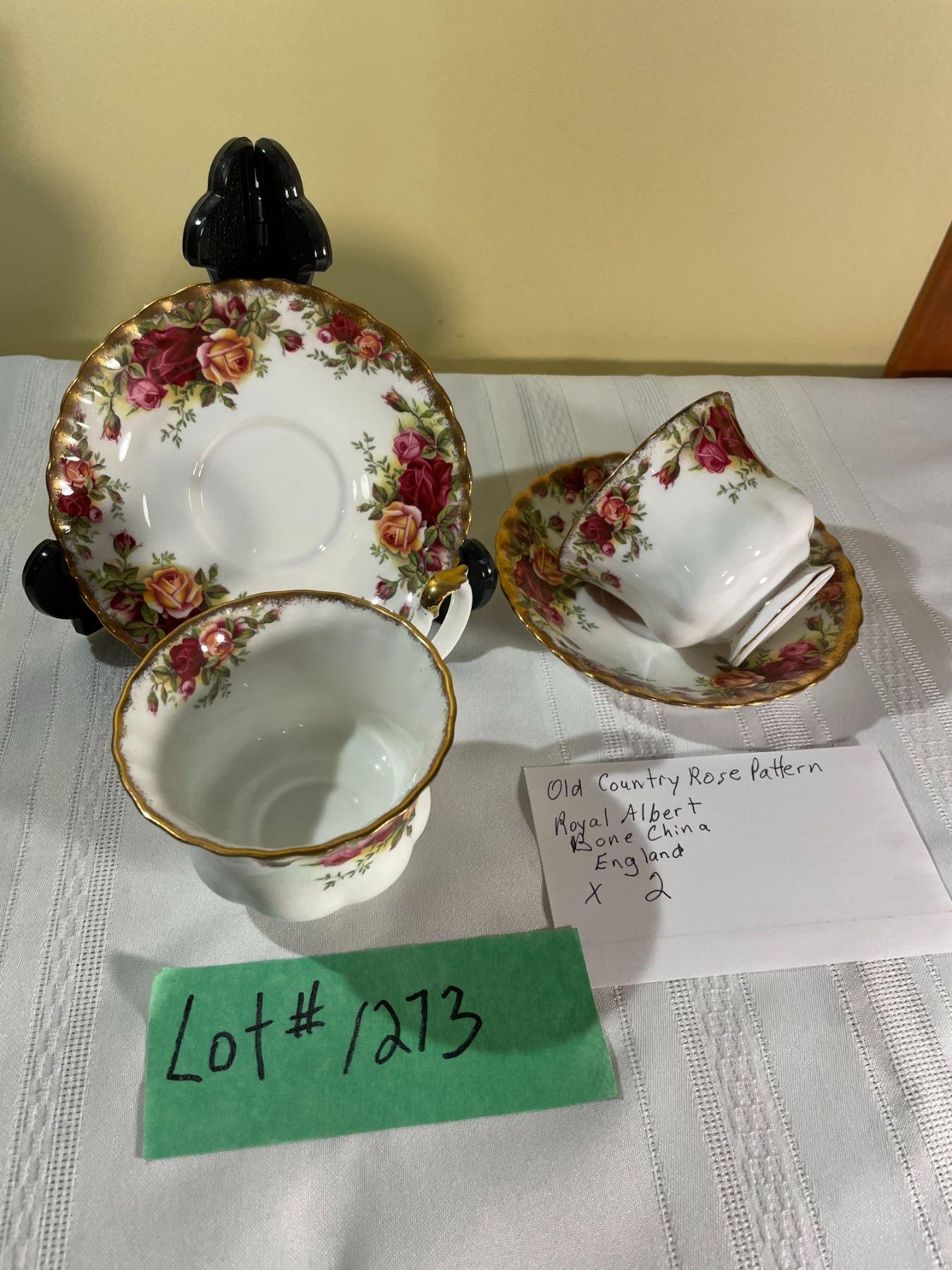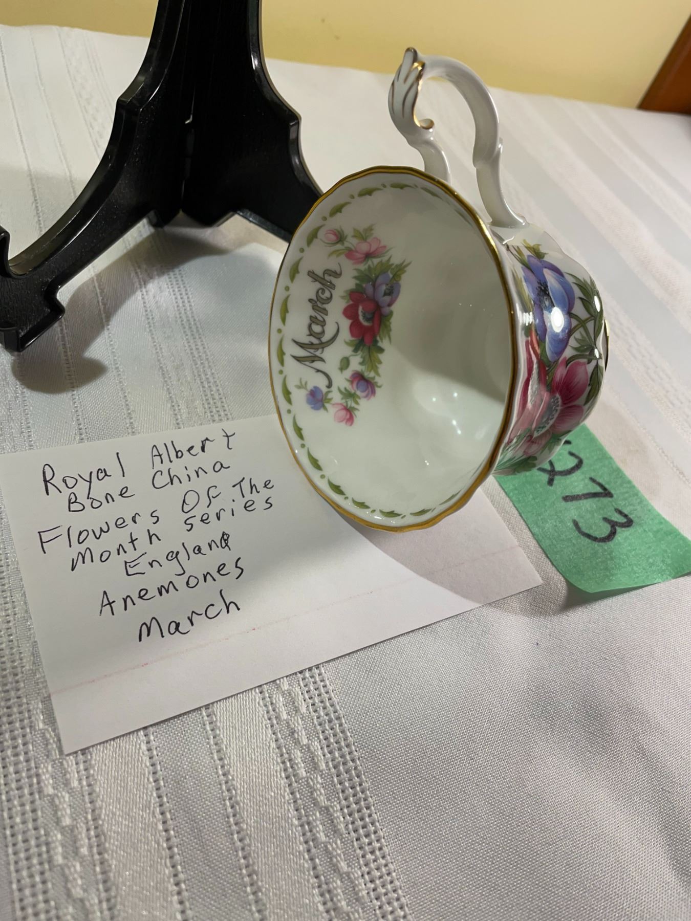 (2) Sets of Old Country Rose Pattern Royal Albert Bone China England (1) Set of Royal Albert Bone China England tea cup + saucer (1) Set of Royal Albert Bone China Flowers of the month series England - Design Anemones March