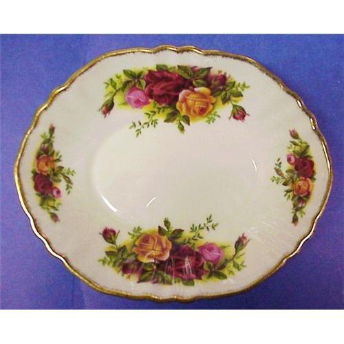 This is a lovely Royal Albert Old Country Roses pickle or relish dish. An exquisite fine bone china piece, it features beautiful gold trim, and a bright vibrant array of pink, red, and yellow roses. The Old Country Roses pattern is one of the most popular patterns from Royal Albert Collections, It measures approximately 6 inches by 5 inches by 1 1/4 inches - US Buyer please pay 7.00 for shipping plus insurance, CONDITION: The dish does not seem ever used, and in it is in excellent condition. Thanks!