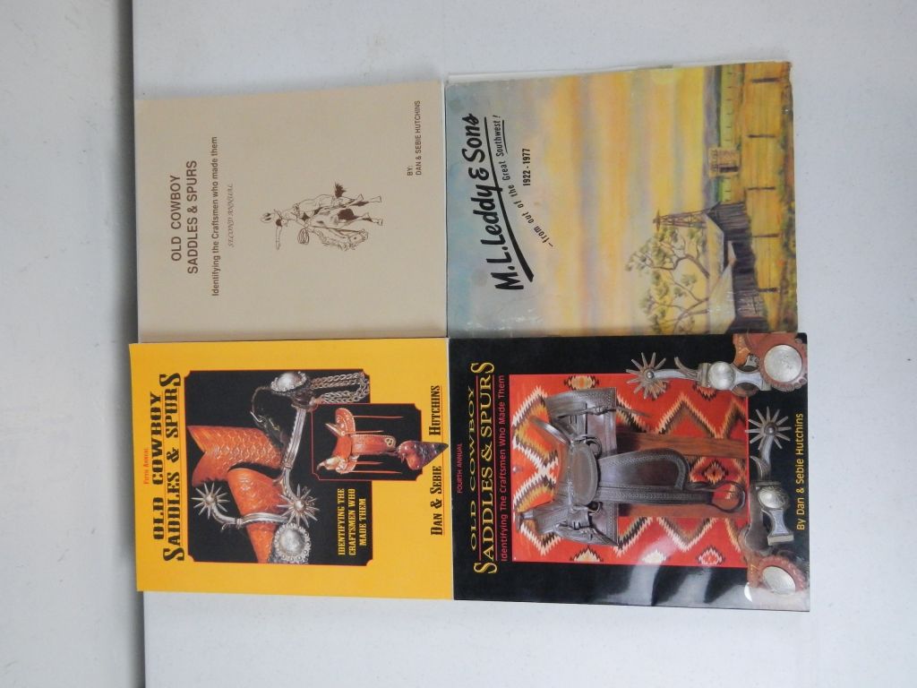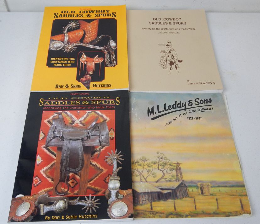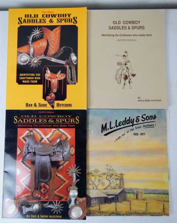 Old Cowboy Saddle & Spurs Books - This collection includes 4 books that identify and discuss the the western collectibles (the 2nd, 4th, and 5th edition). Also included is the M.L Leddy & Sons 1977 Catalog. (one money).