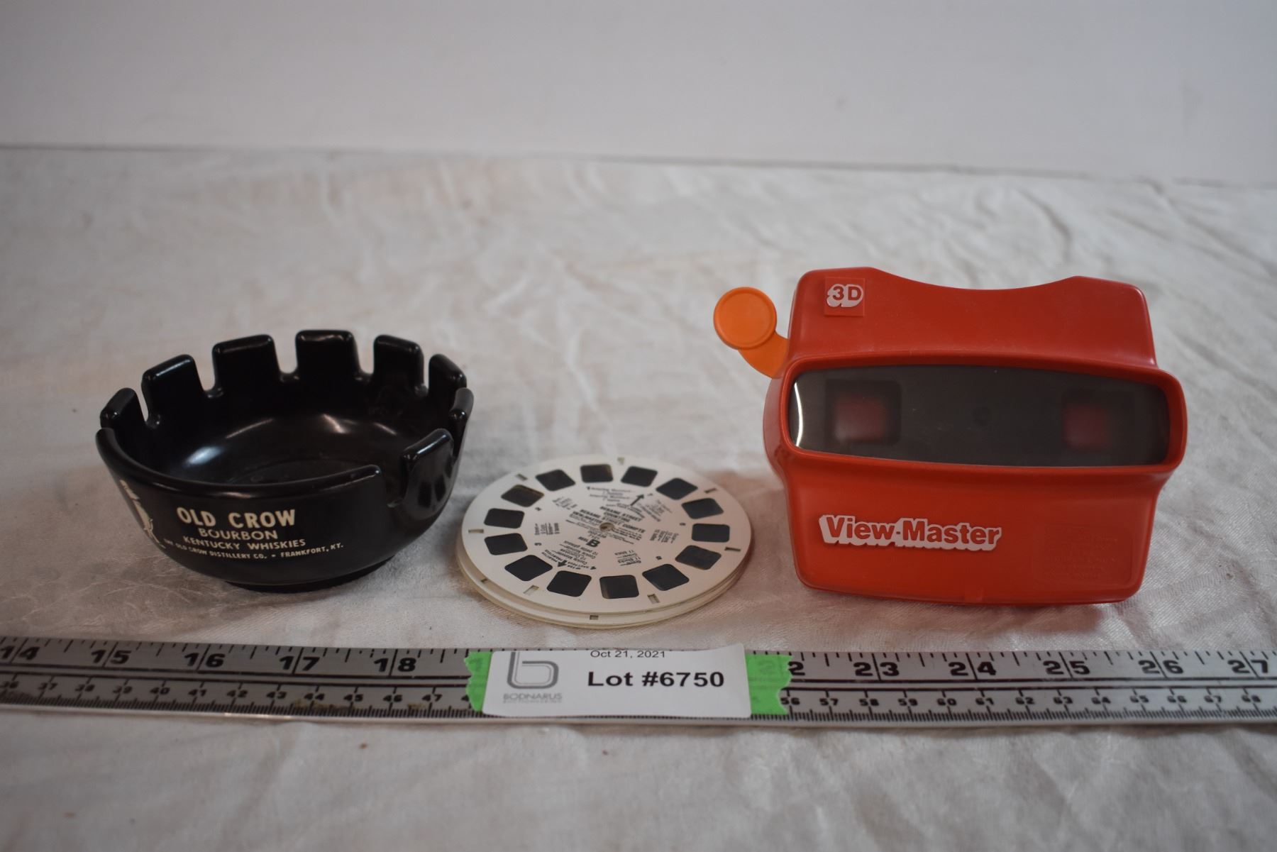 Old Crow Whiskey Ashtray and Viewmaster with Sesame Street Slides