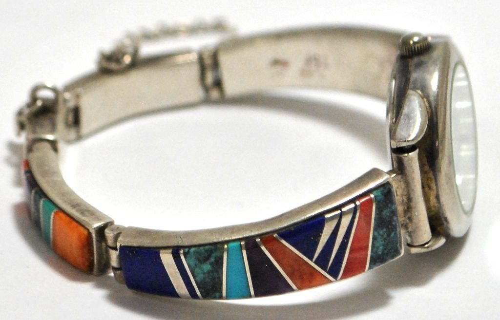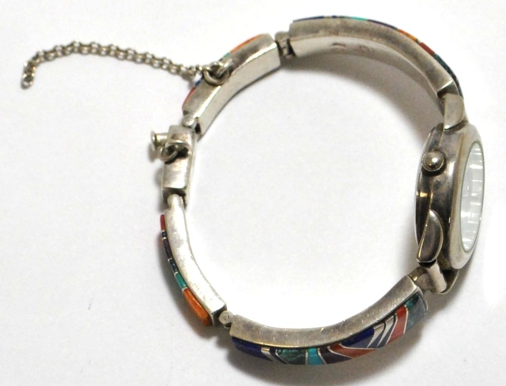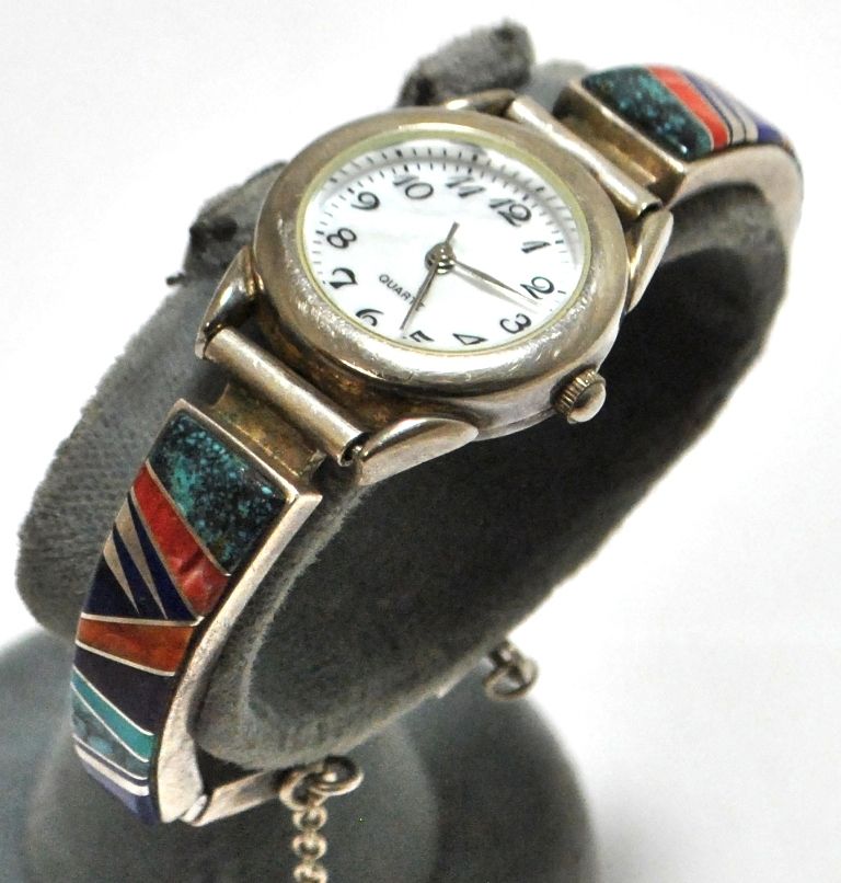 Old Dead Pawn Multi-Stone Inlay Sterling Silver Link Bracelet Women's Watch - Calvin Begay