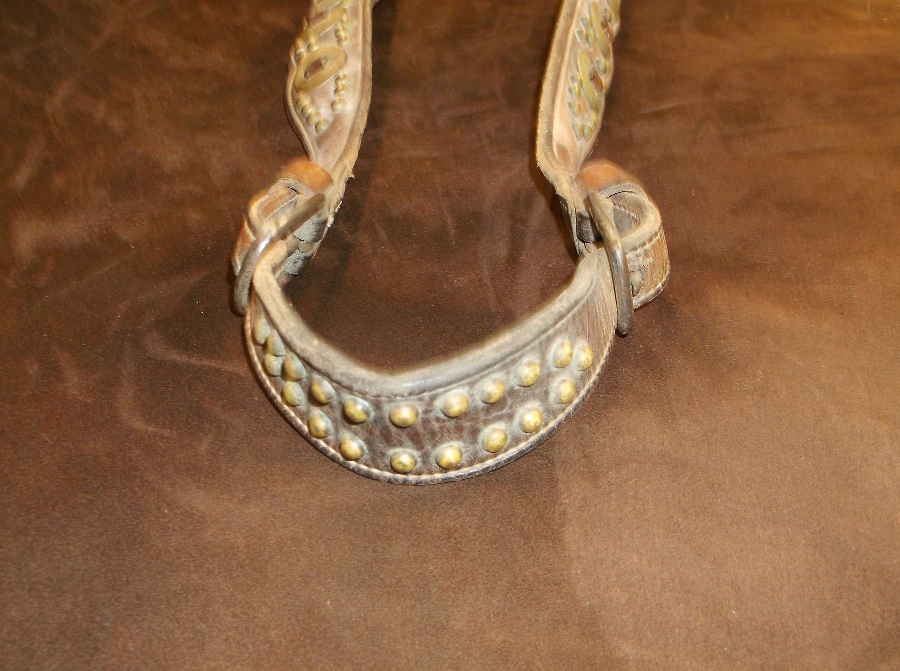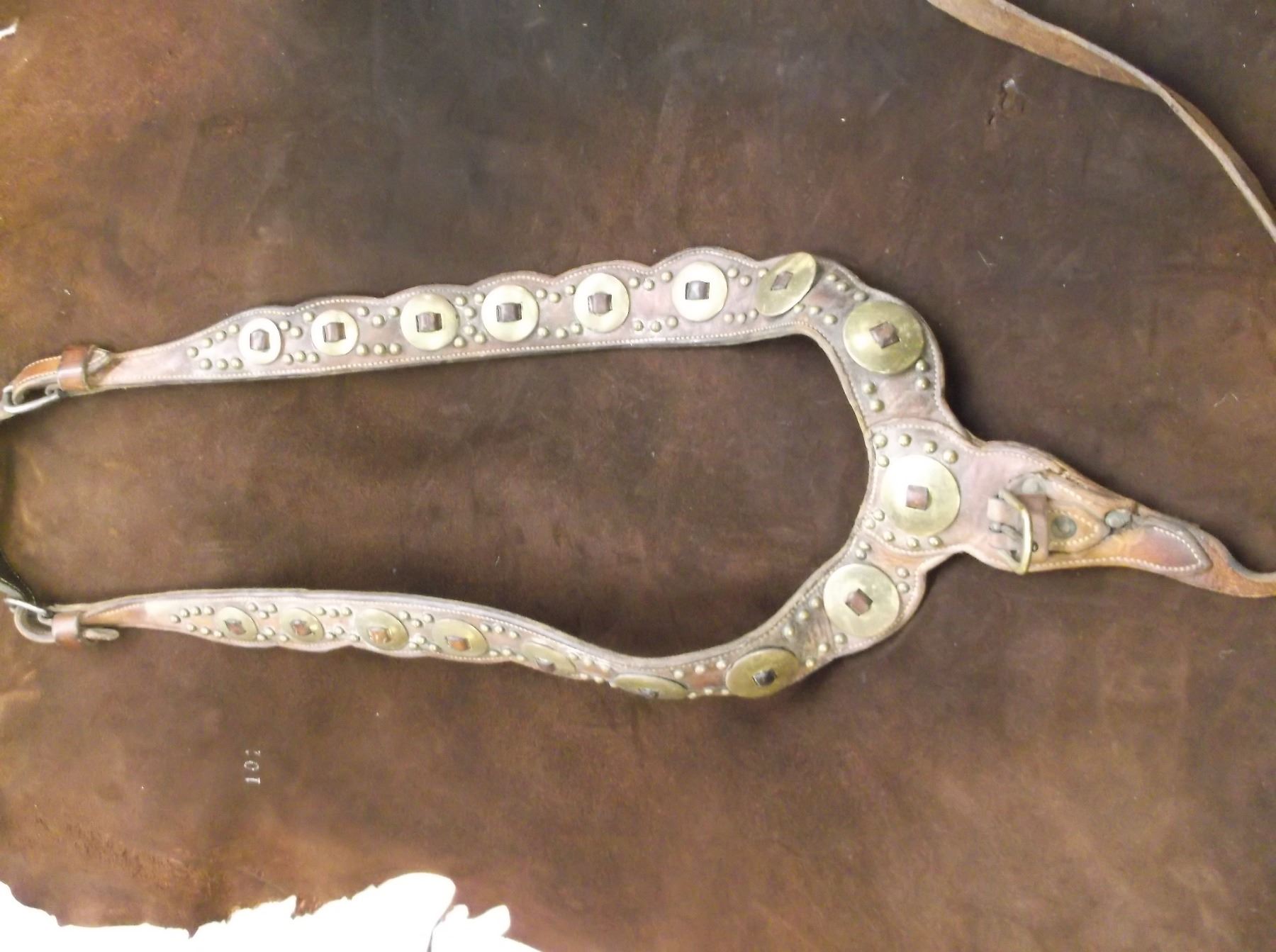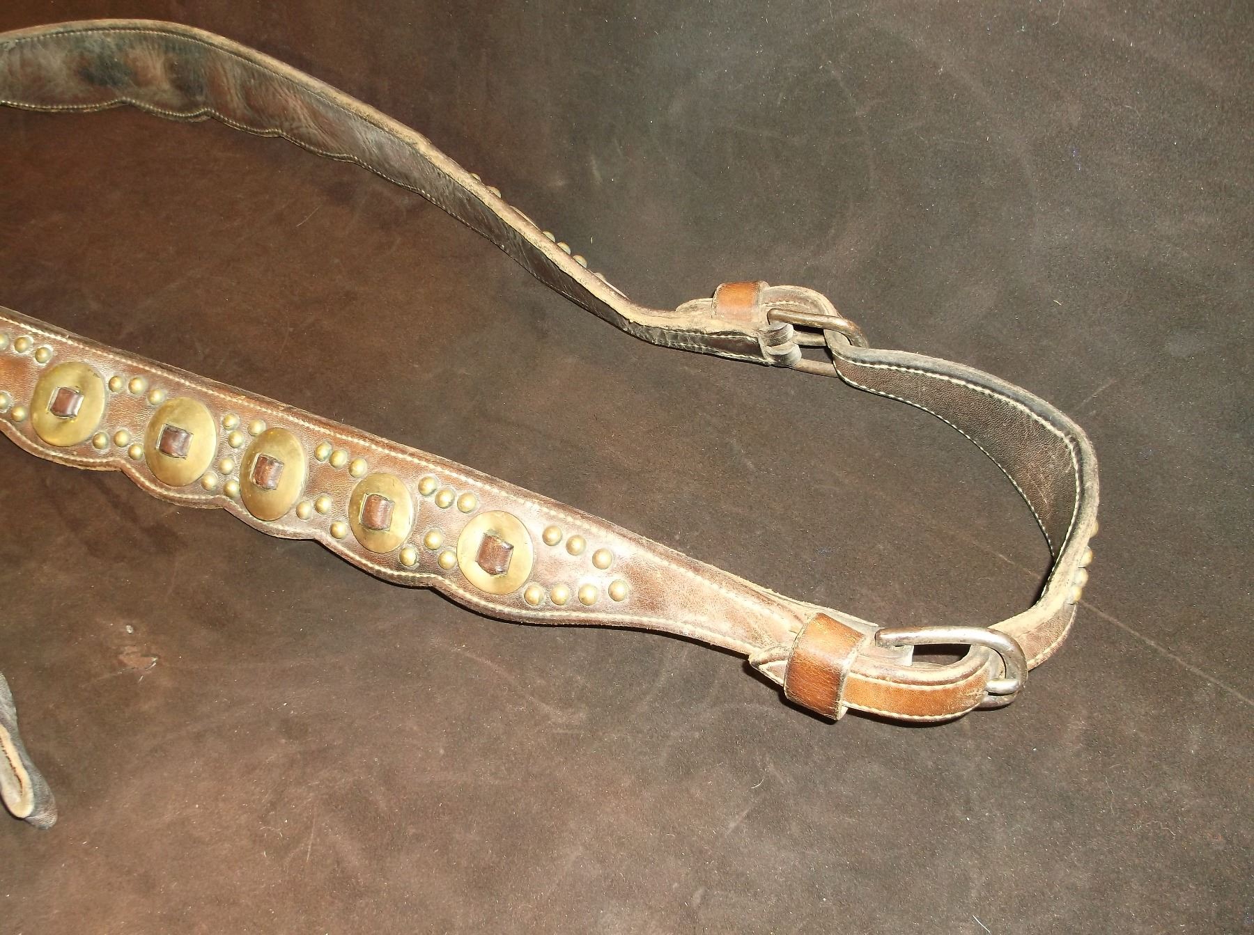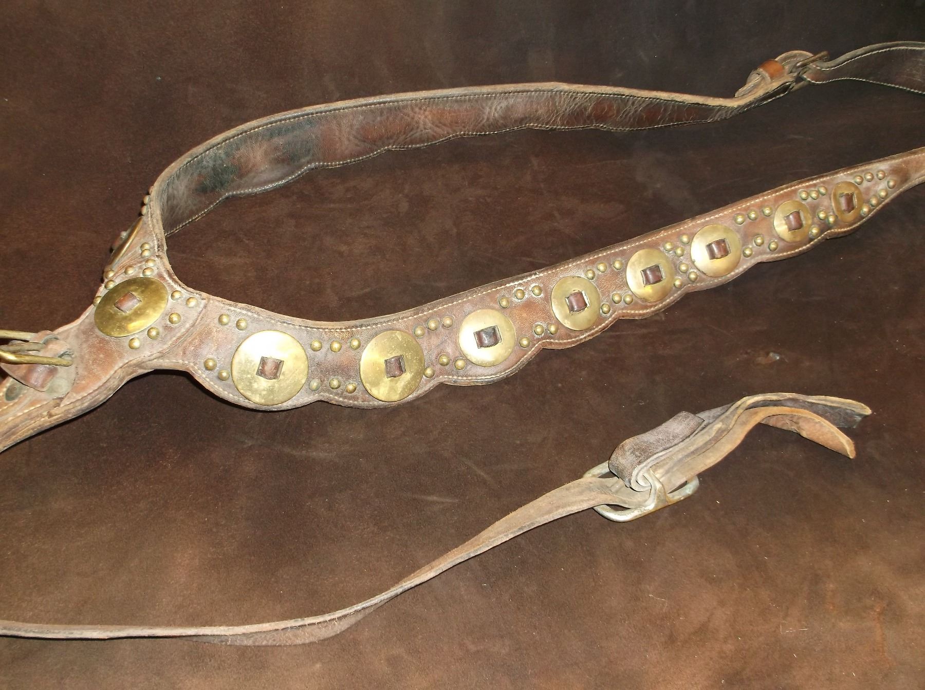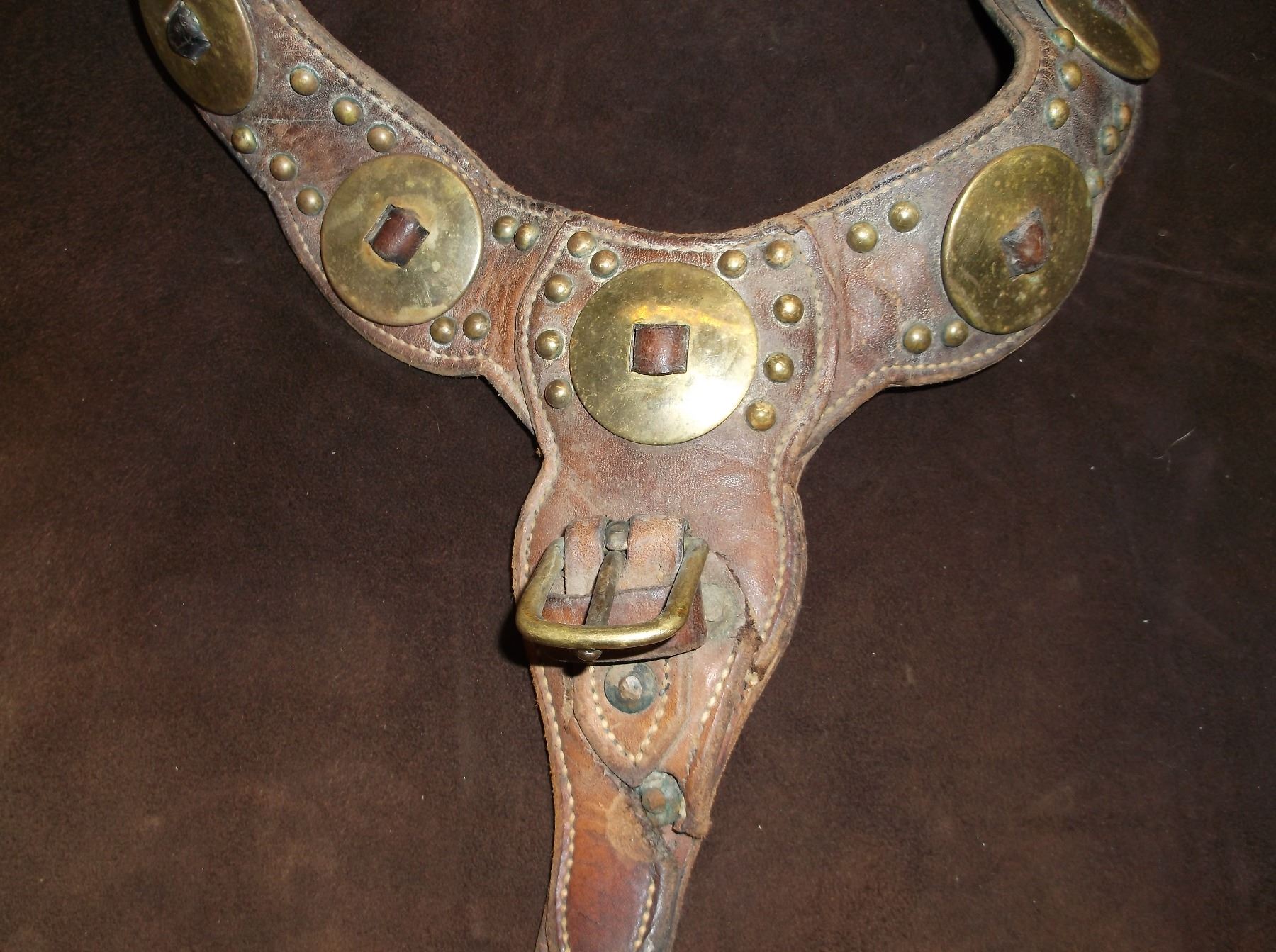 Old Dotted Breast Collar- 17 Brass Conchos- Minor Damage