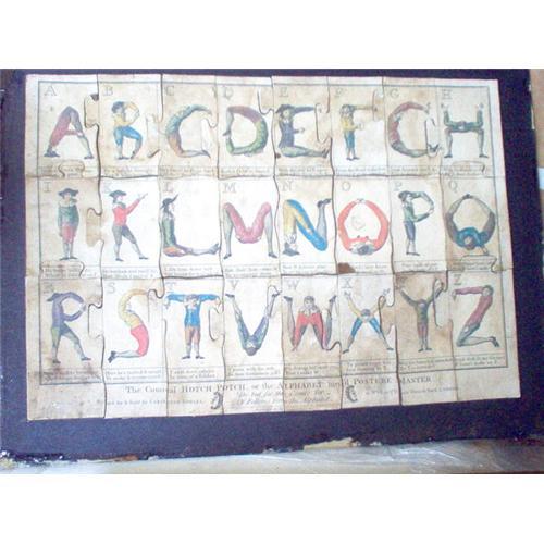 Originally published in 1782.This, I believe. is an old reprint dating to ,maybe,1872.All captions are in old english. Puzzle pieces are mounted to a black composition board. Attractive,comical and charming. To the naked eye, this appears as original to the date 1782 as given. But it cant be. There appear to be phopographic dots in the litho as seen with a 10 power glass. As such, it could not be that early. 1872 or even 1900 would be more likely.