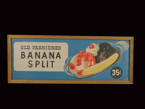 Framed Sign for 35 Cent Old Fashioned Banana Split, 13 inches x 36 inches. Good Cond.
