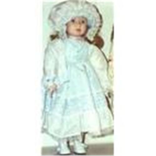 Old fashioned Davita from Dynasty Collection. Se is about 16" tall and made of porcelain head, arms, and legs and cloth body. She is dressed in a blue organza dress with matching bonnet. A very nice first doll and in mint condition!