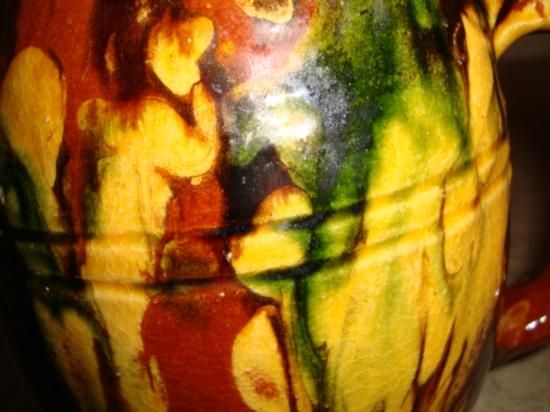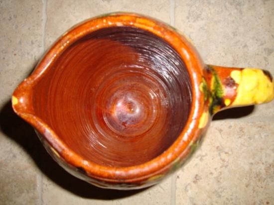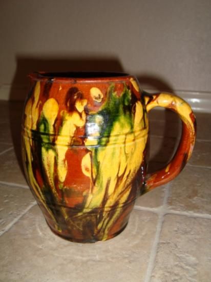 Very beautiful French pitcher from Savoie (French Alpes), in VERY GOOD CONDITION! This charming jaspee Pottery (Terracotta, beige, blue, green colors) dates around 1950?s. This very nice piece of pottery was made by a potter from Anncecy region. In the baroque spirit: the "Jaspee" faience made In the French Alpes (Savoie region), said also " marbled in the mass ". This technique consists in mixing lands of different colors, generally brown nuances, brown, orange-colored and white cremate, until obtain a veiné marble aspect. 1775 is the date generally supposed by the appearance of this technique to Apt. If the game of the marbled colours lends itself to no symmetry, decorations modelled in white earth(ground), added, or applied to these details(rooms) balance and frame(supervise) the disorder of colors. The type of Jaspee pottery is very particular of Savoie pottery. Very good condition! (a very little chip a the top part) h-6.25"/ w-6.5"/ d-5". We ship from Texas (not from France)!