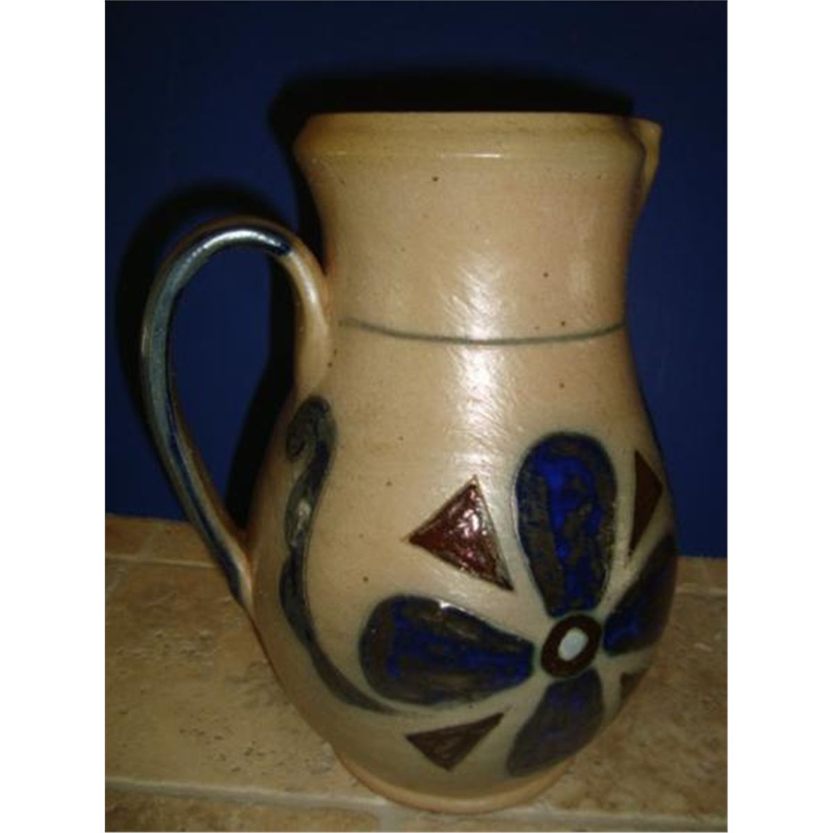 Highly collectible pitcher from Alsace (Eastern France). Here is a charming Alsatian hand-painted stoneware jug-pitcher from the village of Betschdorf. No cracks and no chips. Great condition! h-9.25/ w-7.5/ d-5.5 We ship from Texas (not from France)!