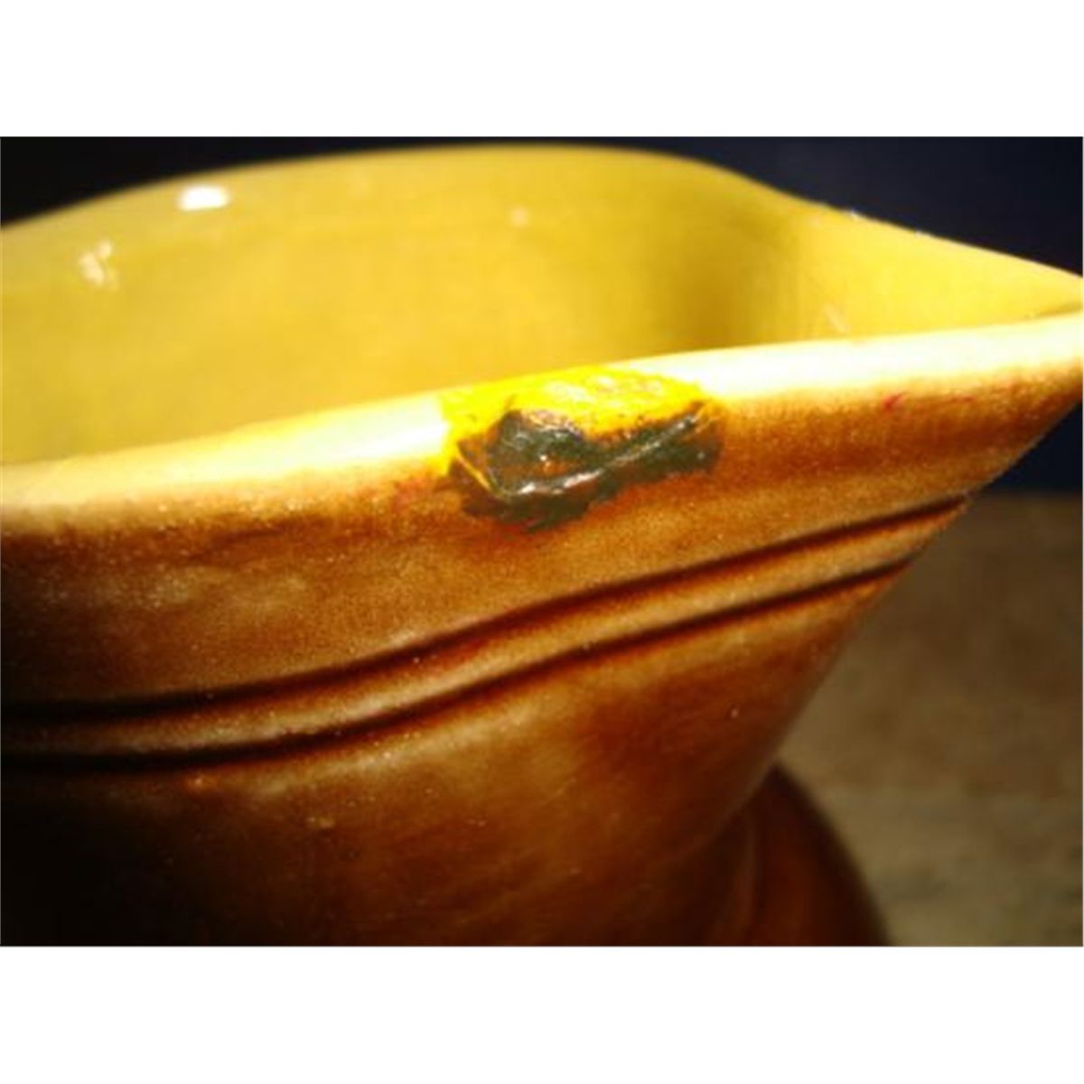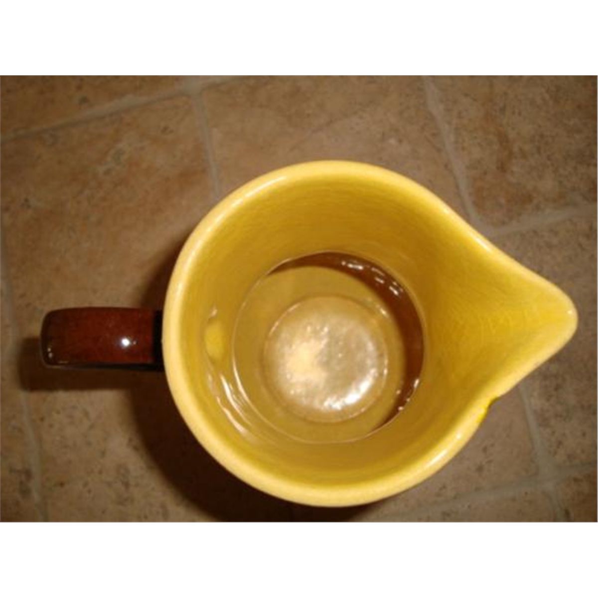 French pitcher from Eastern France, in good condition! (little chip at top part as you can see on photo). Here is a charming Pottery, dating around 1950's, with its brown and yellow colors. h-7.75/ w-7/ d-6 We ship from Texas (not from France)!