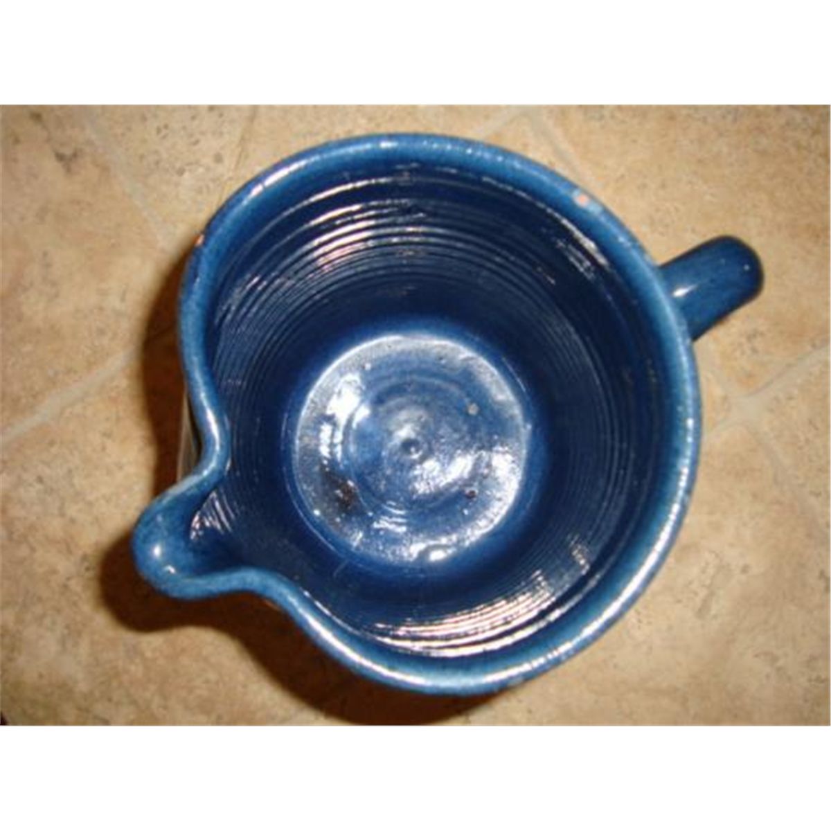 Highly collectible pitcher-jug from Alsace (Eastern France). This charming Alsatian piece of pottery (hand-made and hand-painted), dating around 1920's, come from many different villages throughout the region. The dark blue "terre vernissee", or glazed pottery, with its decorative flowers, comes from the village of Soufflenheim. Good condition (No cracks, very little chips as you can see on photo). h-5.5/ w-7.25/ d-5. We ship from Texas (not from France)