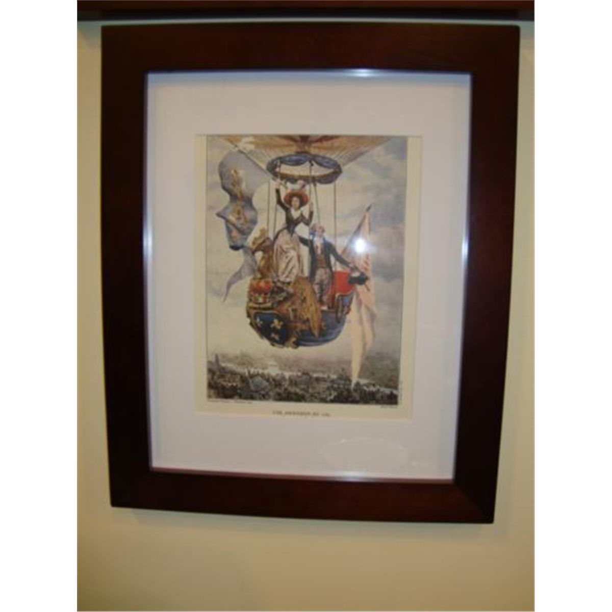 French old print of Paris, dated 1955: Montgolfieres in Paris in 1789. Very good condition (no damage)...the frame is new. h-13.5"/ w-16.75". This print will be a great part of France in your home! Don't worry for the shipping...we ship from Texas (not from France!)