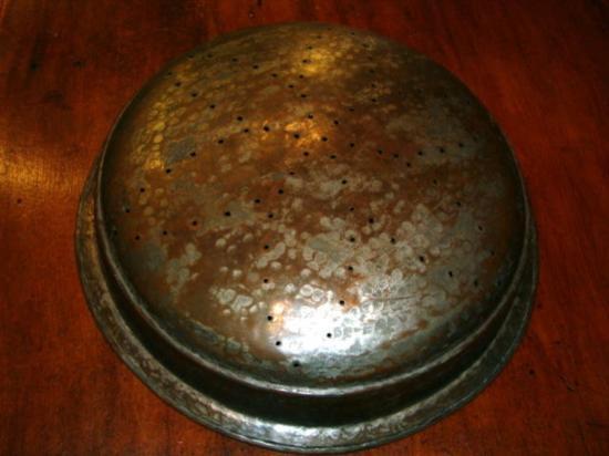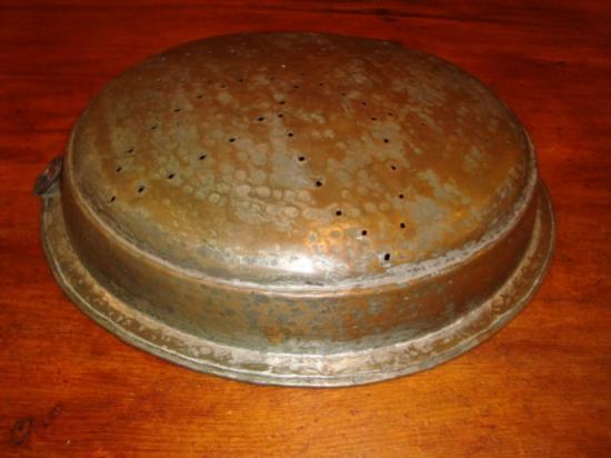 Old brass(?) strainer sieve probably made in late 1800's and used in southern France. Diameter-15"/ h-3.5". This piece is in good condition and was hand-hammered as you can see on photos. For the shipping, don't worry, we ship from Texas (not from France)!