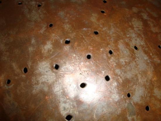Old brass(?) strainer sieve probably made in late 1800's and used in southern France. Diameter-15"/ h-3.5". This piece is in good condition and was hand-hammered as you can see on photos. For the shipping, don't worry, we ship from Texas (not from France)!
