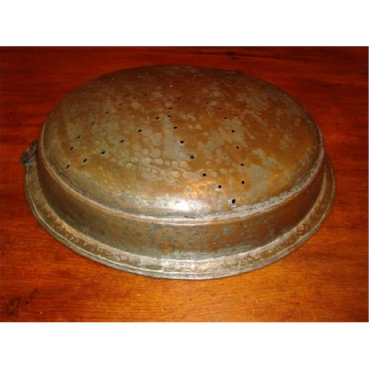 Old brass(?) strainer sieve probably made in late 1800's and used in southern France. Diameter-15"/ h-3.5". This piece is in good condition and was hand-hammered as you can see on photos. For the shipping, don't worry, we ship from Texas (not from France)!