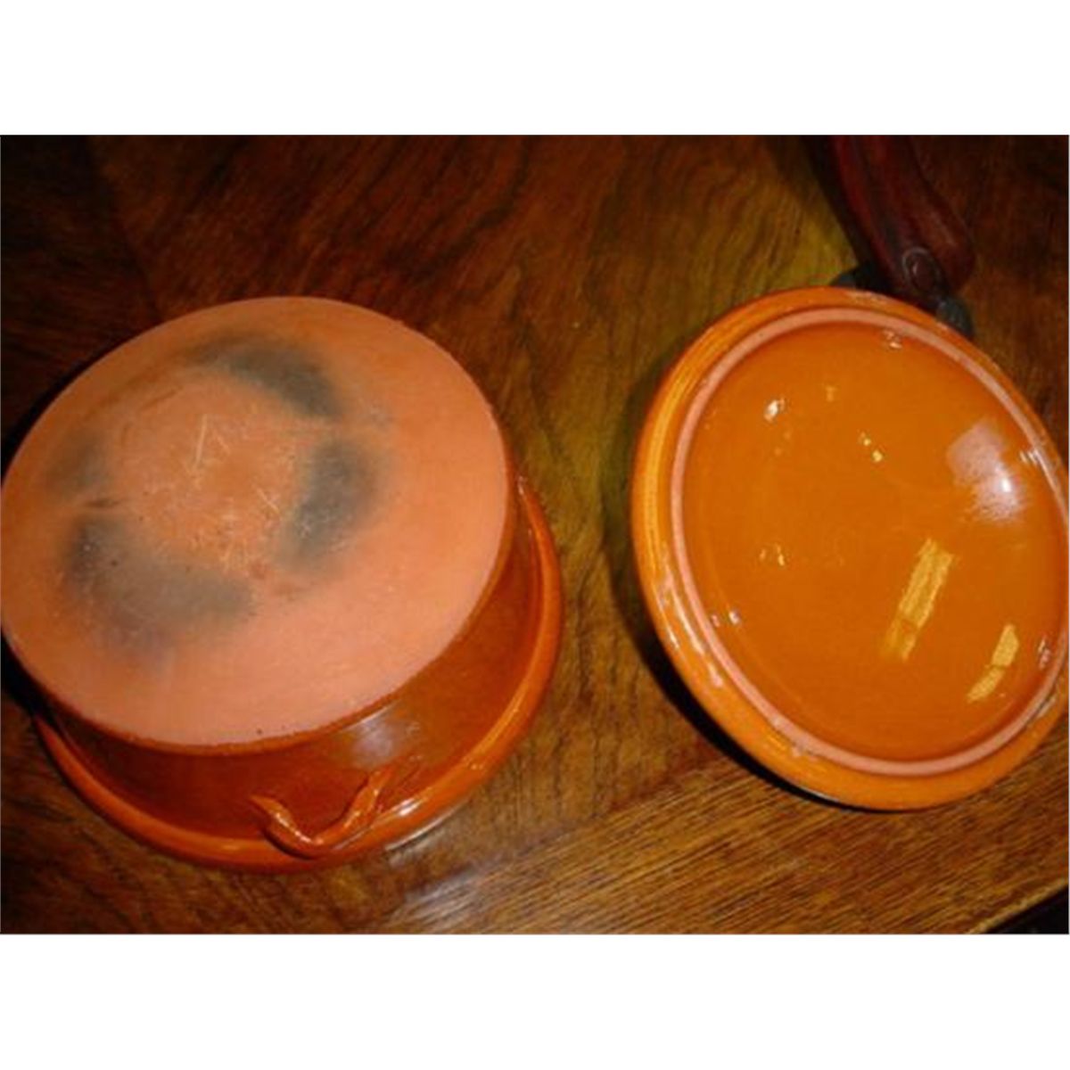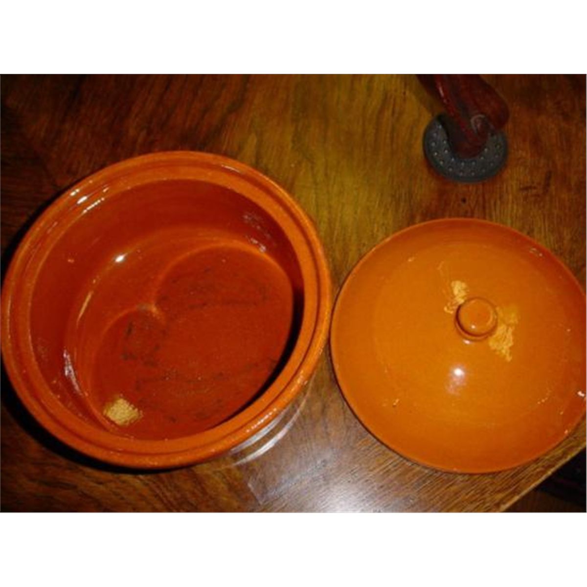 AUTHENTIC PIECE OF POTTERY (terrine with its lid) FROM SOUTH of FRANCE, Circa 1930... No chips, No cracks. You can see the glaze outside. Very good condition! We ship from Texas (not from France).5.5 x 9 x 9