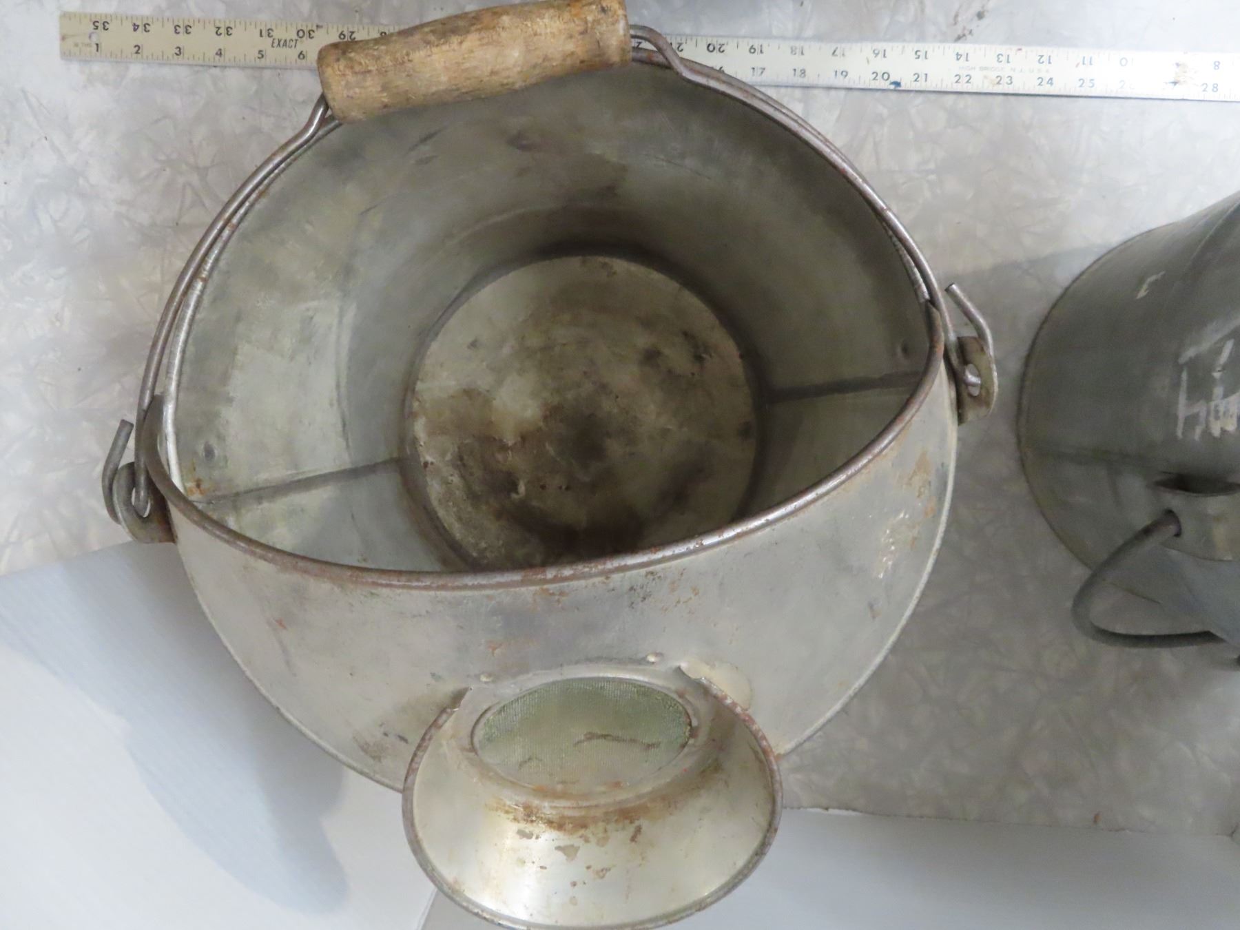 Old Galvanized Well Pail & Milk Pail with Strainer