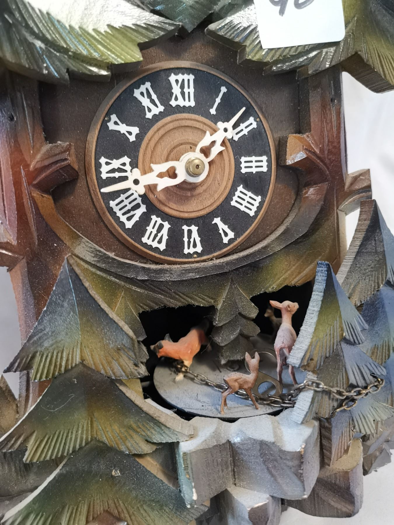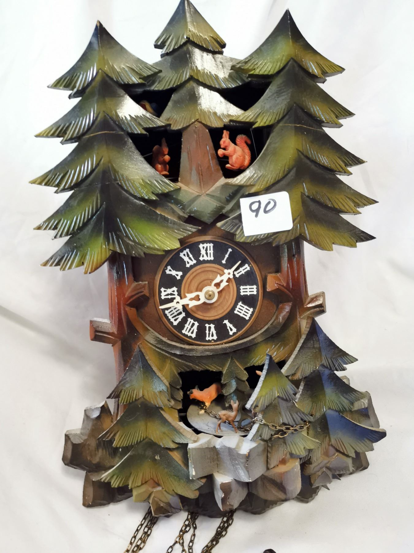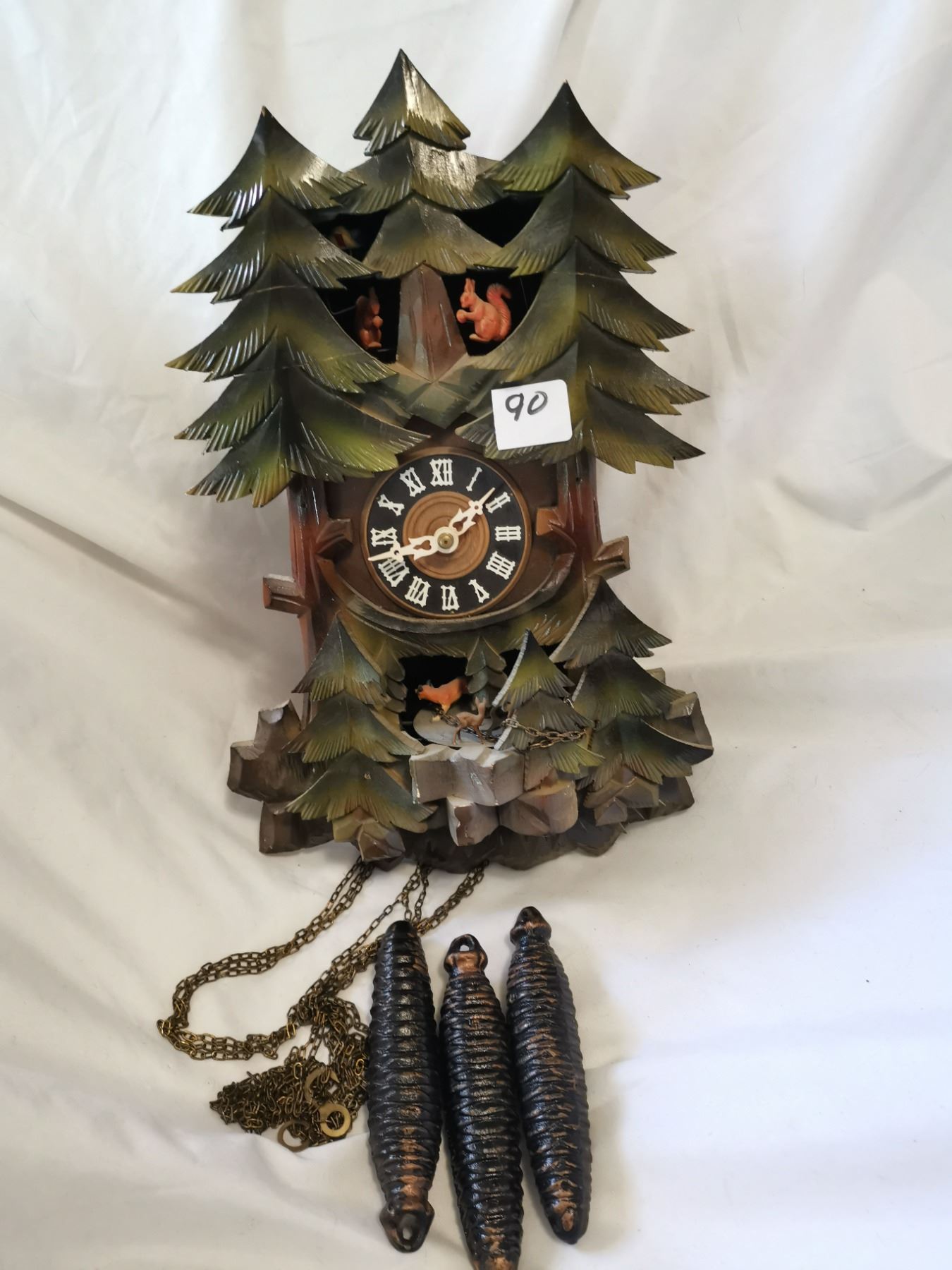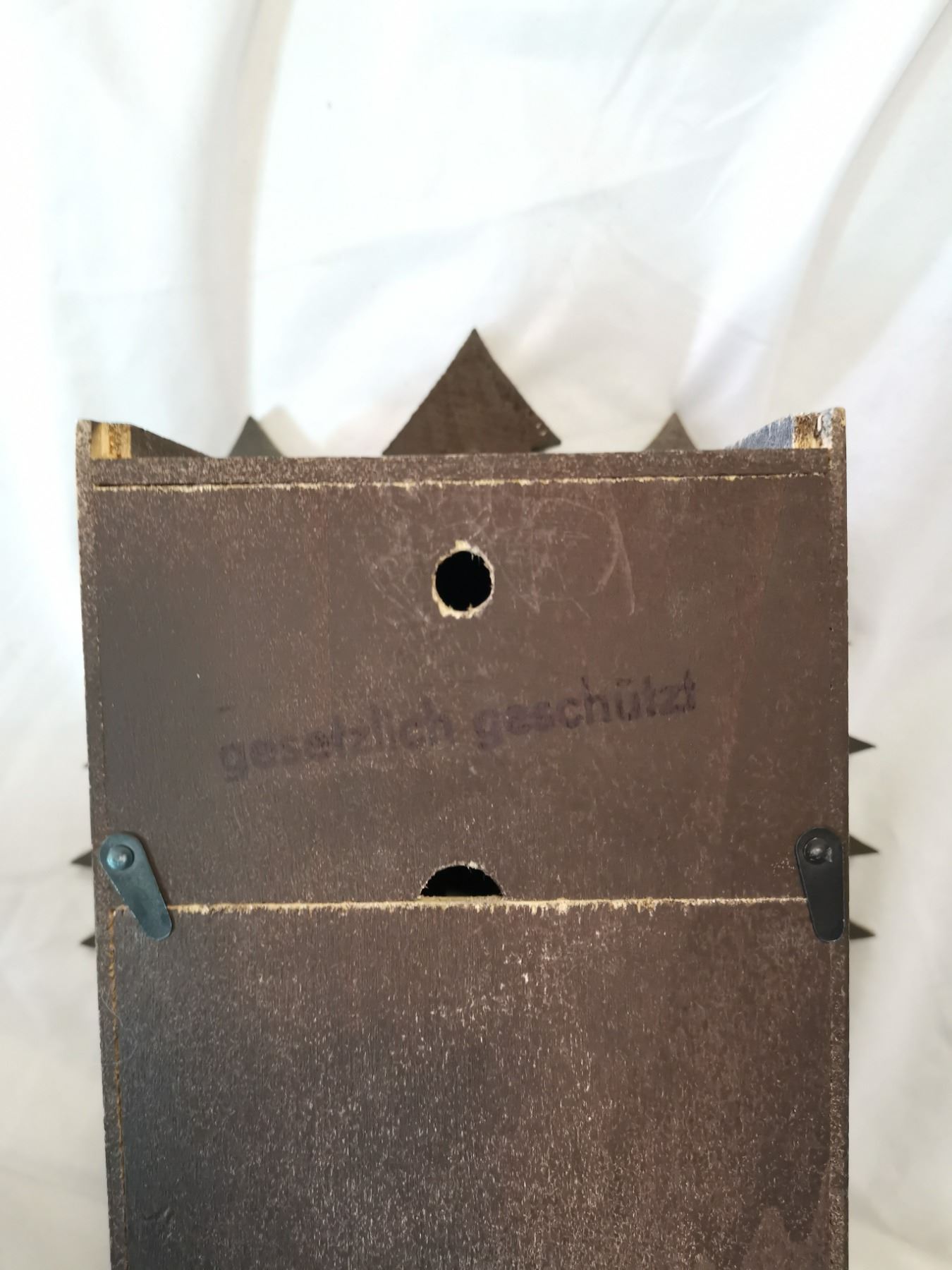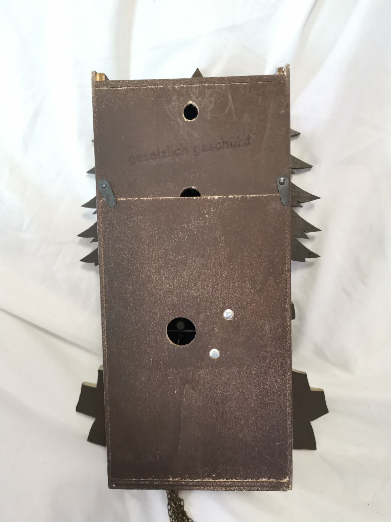 Old German cuckoo clock wood 13" high; pendulum is missing