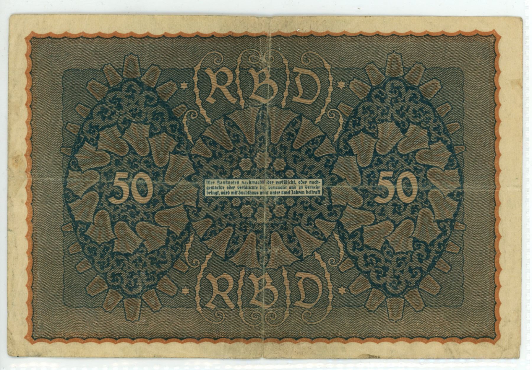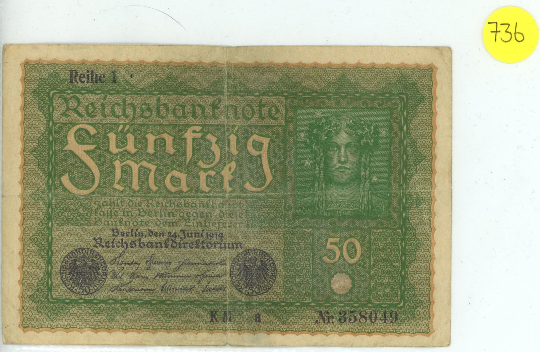 Old German paper note 50 Mark Reichsbanknote