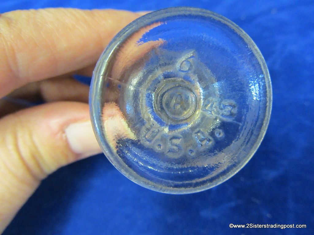 Old Glass Armstrong's Eye Bath manufactured by Armstrong Cork Company - Lancaster, Pennsylvania. The eye bath/wash measures 2-1/8 inches tall. On the bottom of eye bath is marked U.S.A. - 6 - A - 43. In very good condition.