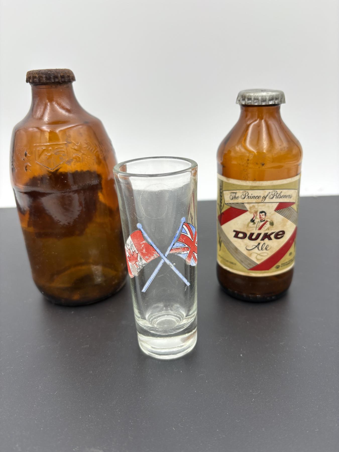 Old Glass Bottles - Canadian Shot Glass - The Prince of Pilseners Duke Bottle