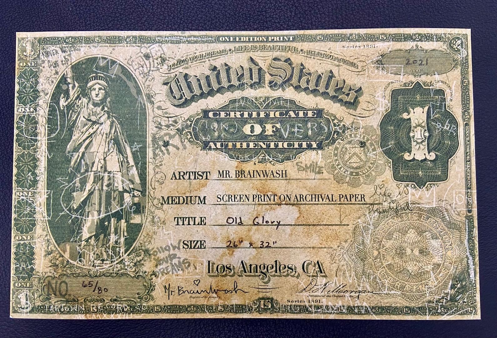 One Old Glory by Mr. Brainwash. Comes with CoA.