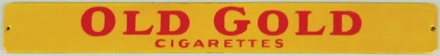 Old Gold Cigarettes Porcelain Two Sided Sign. Mint condition. 18 X 2 inches.