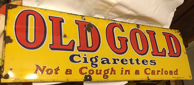 Well over 100 years old! Old Gold Cigarettes early country store porcelain advertising sign. This sign would have been affixed to the outside of an early country store. Very hard to find in today's marketplace.