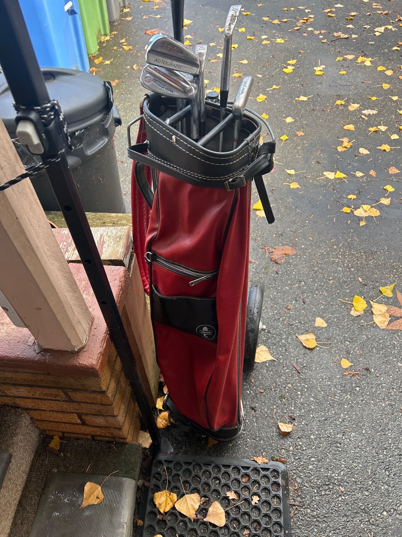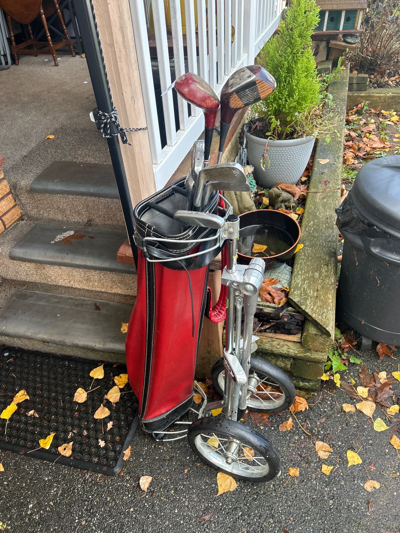Old Golf Bag and Cart w/ Clubs *No Shipping*