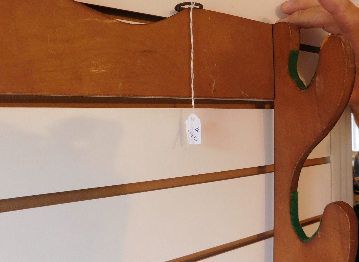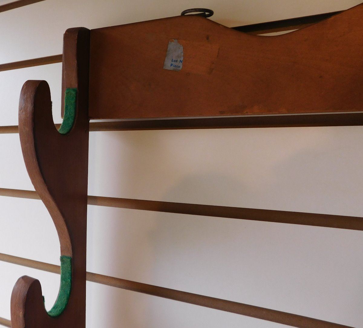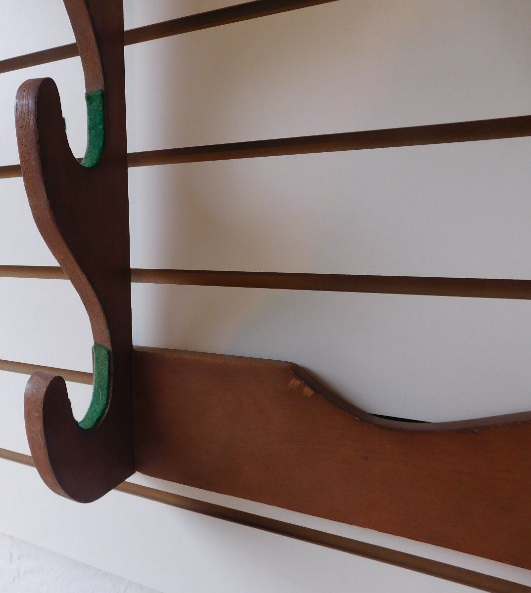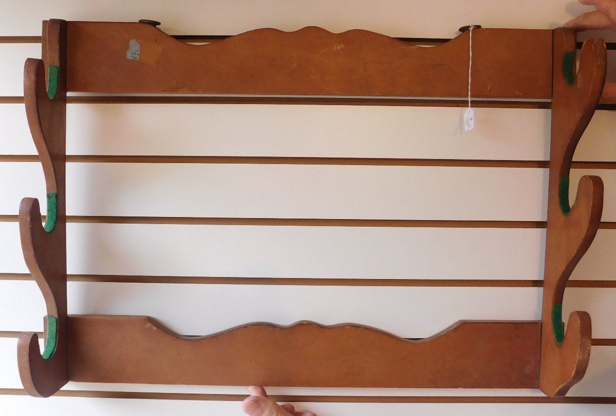 Old Gun Rack, circa 1960s. Made of wood, the item is 25.75" x 17.5". USA. 3 gun rack. Condition: Good, see images. Shipping: $35.00 due to size, w/insurance and signature.
