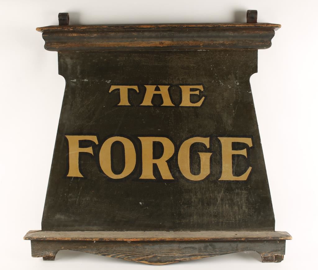 Depicting a Blacksmith on one side and "The Forge" on the other. Great decorator piece! Measures 31"x31"