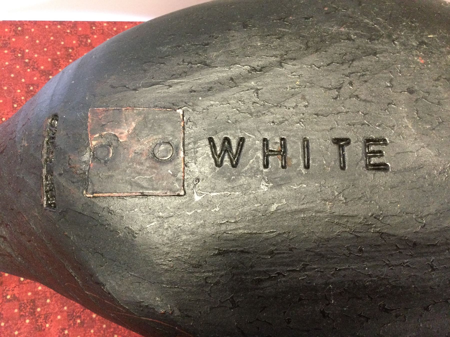 You are bidding on a very nice glass eyed, handcarved and signed "White"