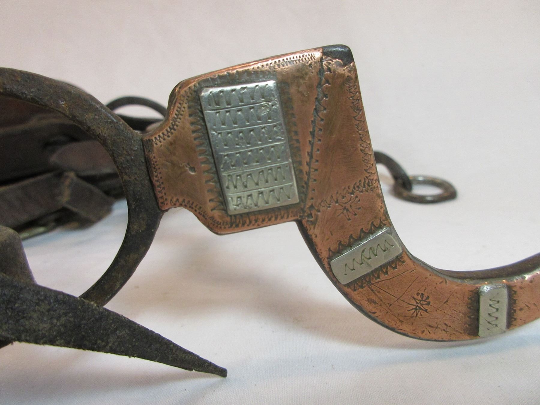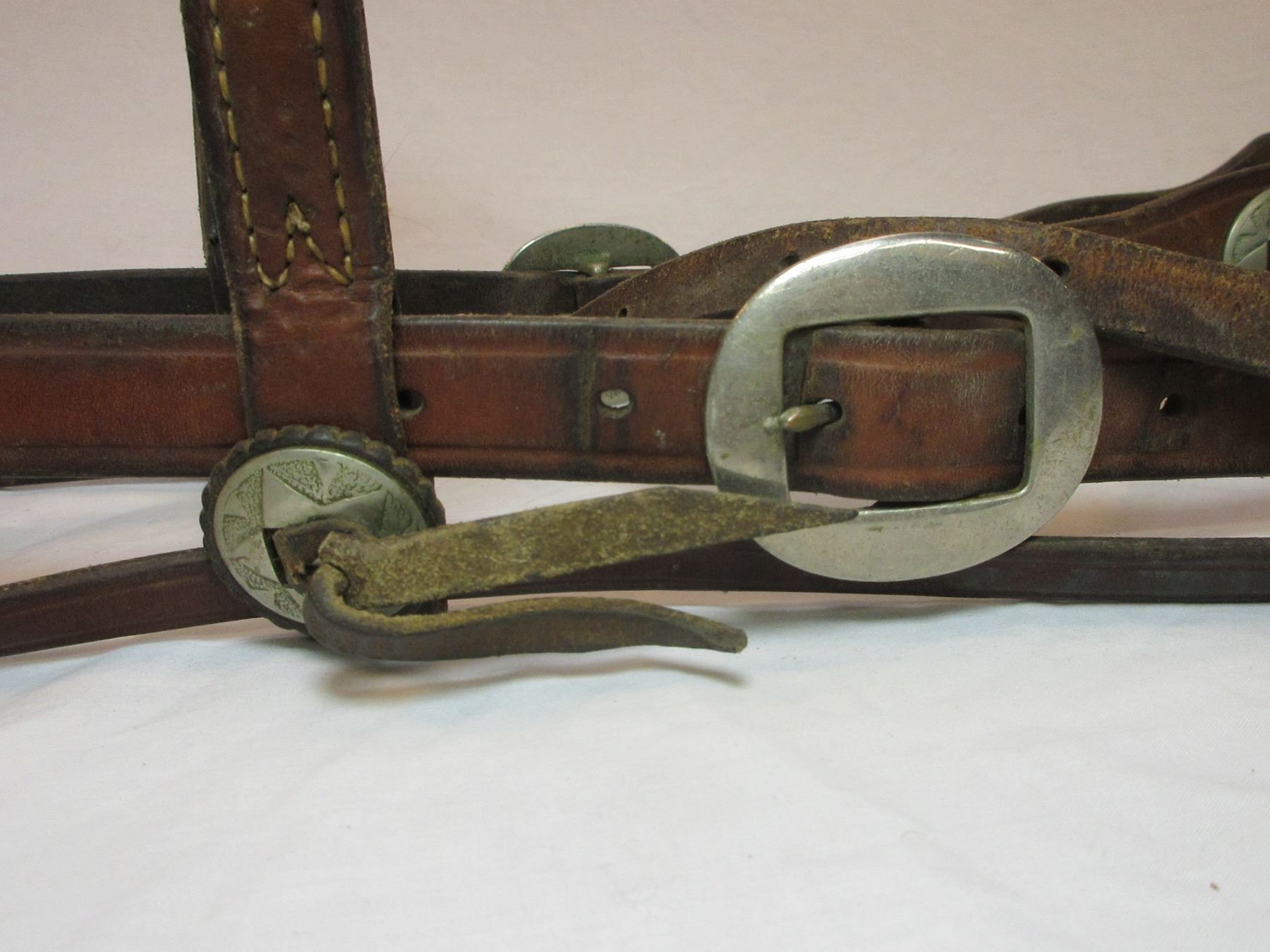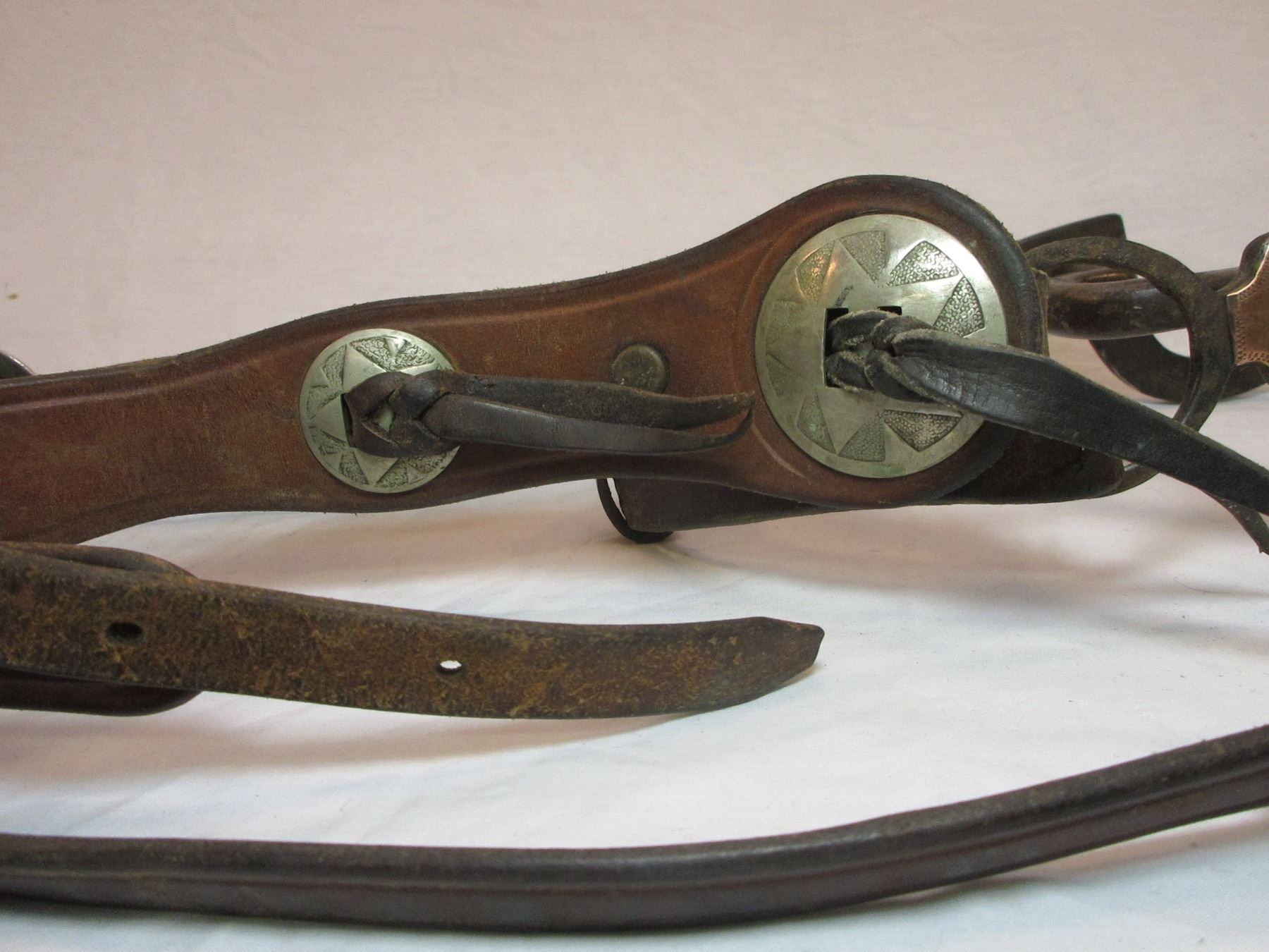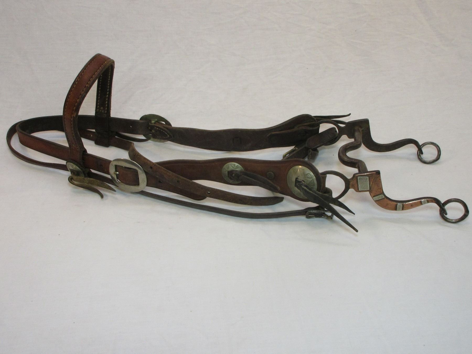 Old Headstall With Nickel Conchos- Buckle Anchor Marked- Unmarked Silver and Copper Bit- Martinez Cheek Curb Mouth