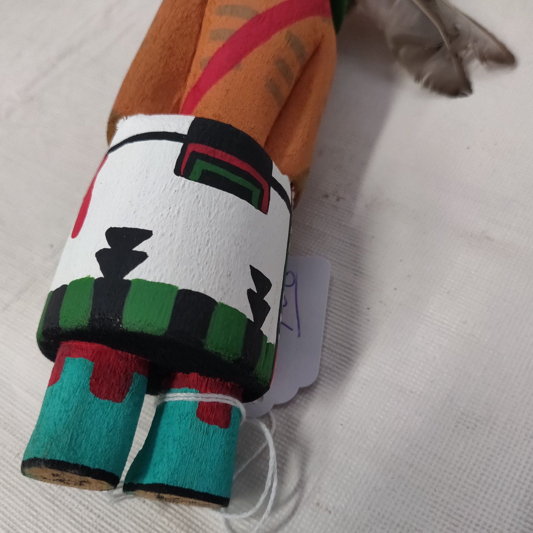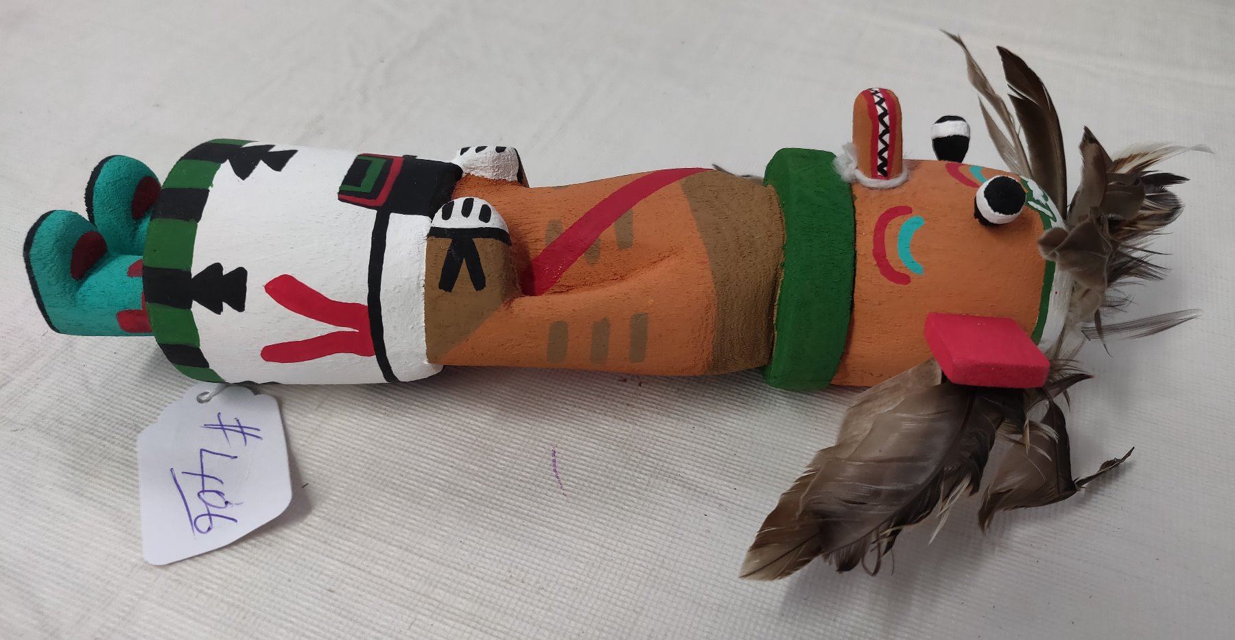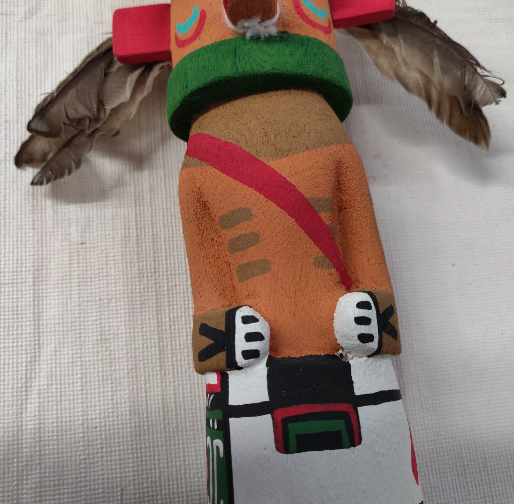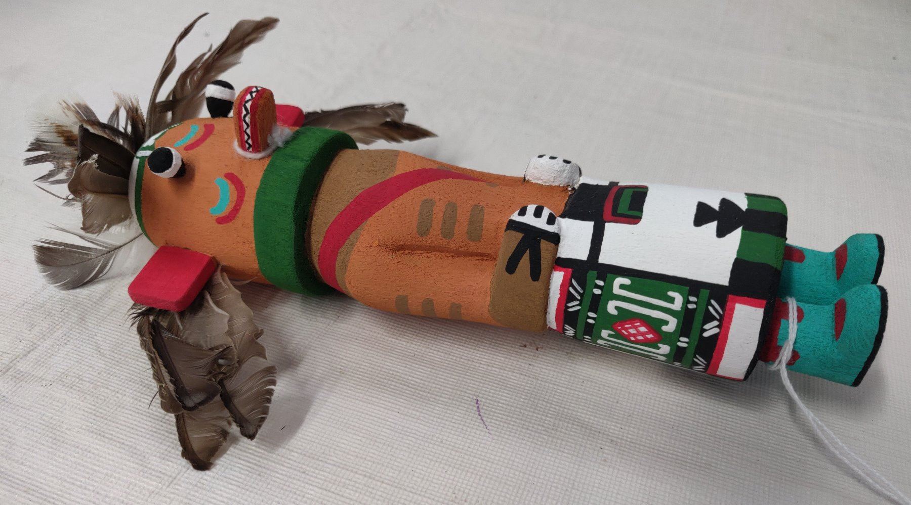Old Hopi Kachina Doll, c. 1930s. Made of cottonwood, paint and feathers, the item measures 9" x 3". Northern Arizona. Condition: Good, see images. Shipping: $22.50 w/insurance and signature, due to value.