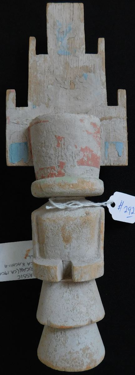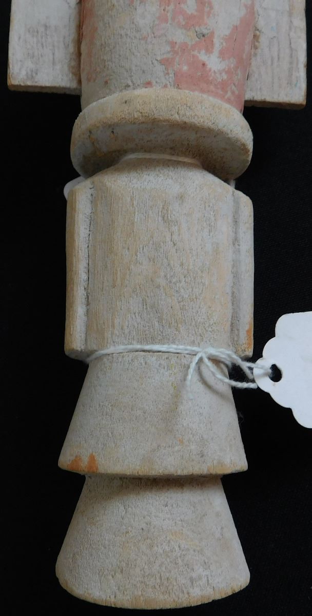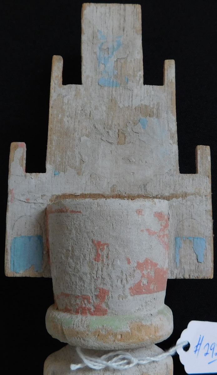Old Hopi Kachina, early 20th century item. Made of cottonwood and measuring 9.5" x 3" x 1.75". Hopi, northern-central Arizona. Yucca Kachina. Condition: Some paint loss and fading, see images. Shipping: $24.50, insured, double-boxed with signature.