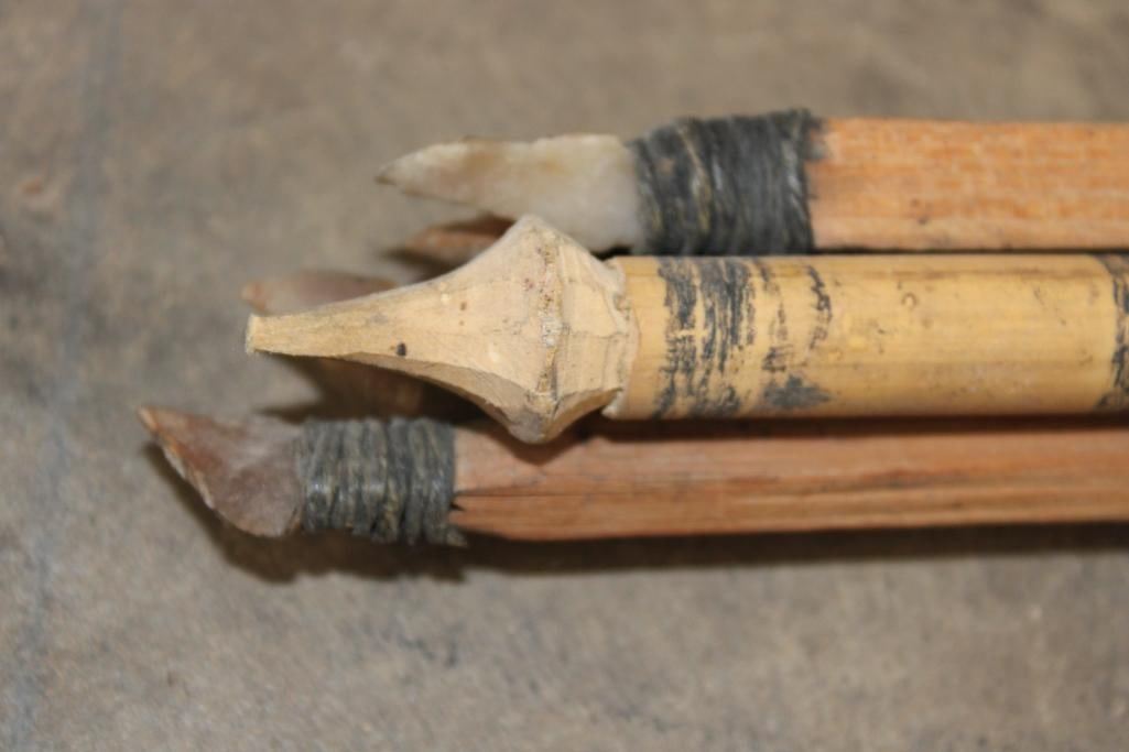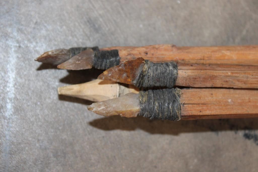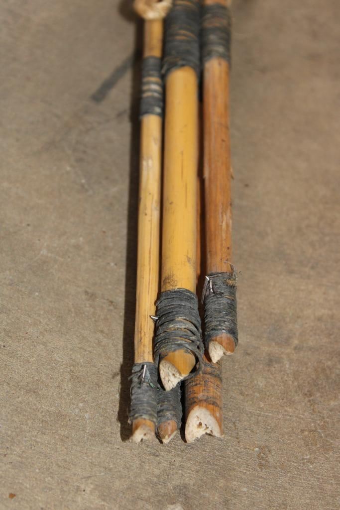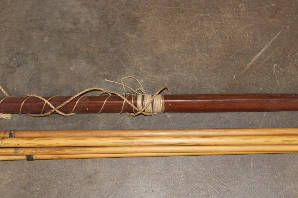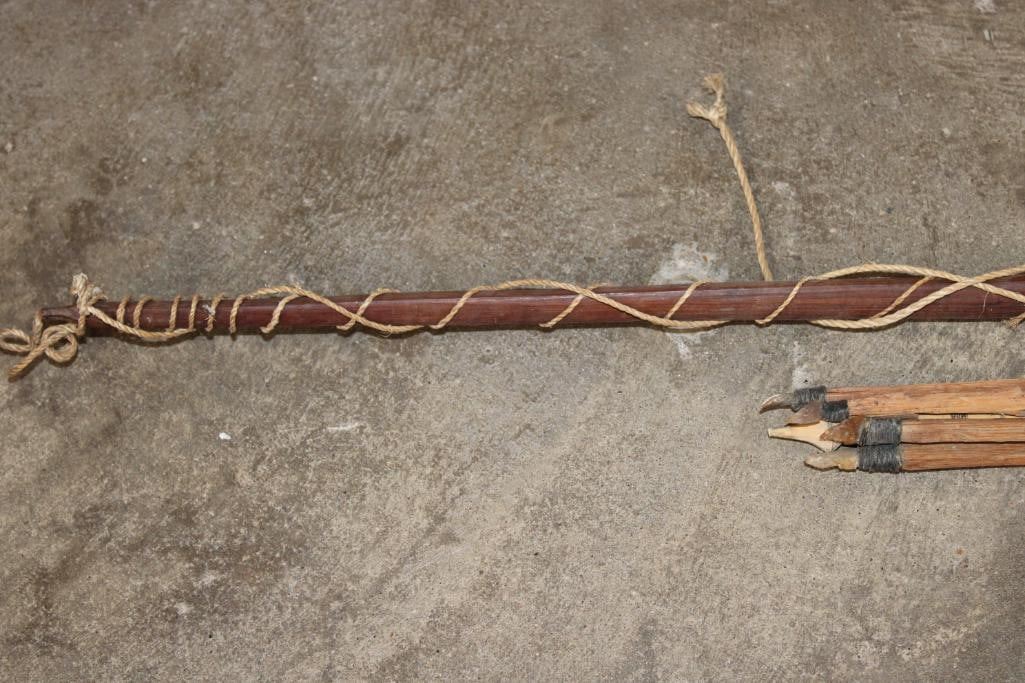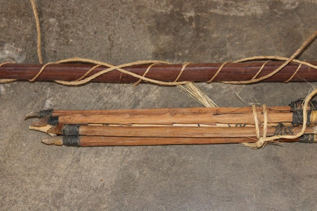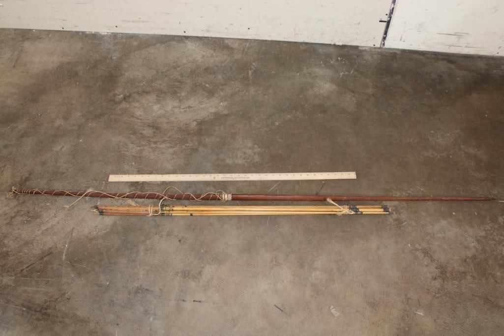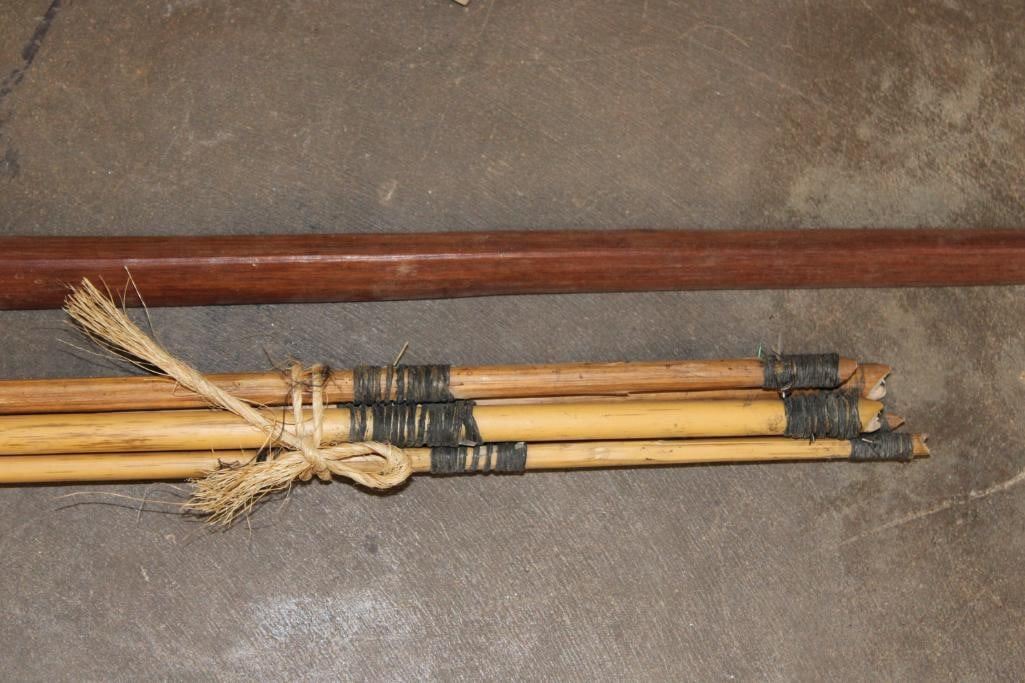 Indigenous African Bow Staff with 5 Arrows. It appears to be old. The Bow measures 70" Long and each Arrow measures 41" Long. AFRICAN HUNTING ARTIFACTS