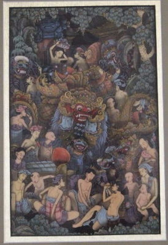 Old Indonesian Color Work in Gilt Frame 17x14"