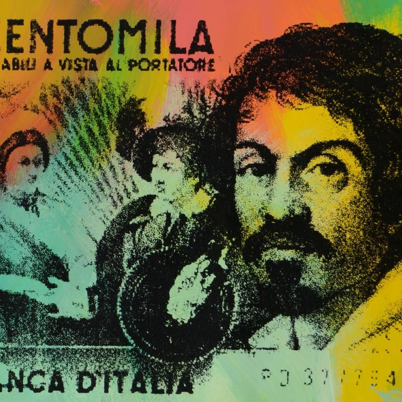 "One Hundred Thousand Lire" is a hand painted limited edition silkscreen on canvas from an HC edition by Andy Warhol protege Steve Kaufman (1960-2010). This piece is hand signed inverso. Includes letter of authenticity. As is common with Kaufman's works, this piece may have perceived minor flaws, but is in overall good condition. Measures approx. 36" x 14" (image).