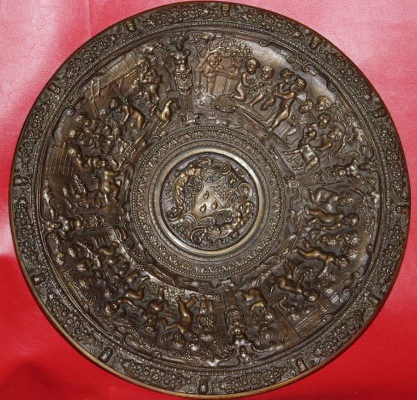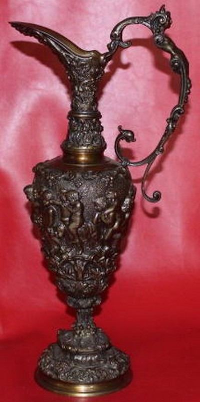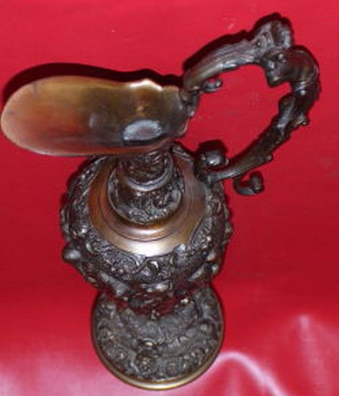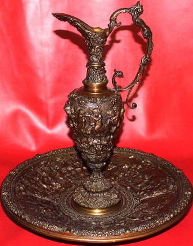 A Rare Find with Plate. Antique Italian Renaissance Style Bronze Ewer Pitcher w. Plate Set 16",