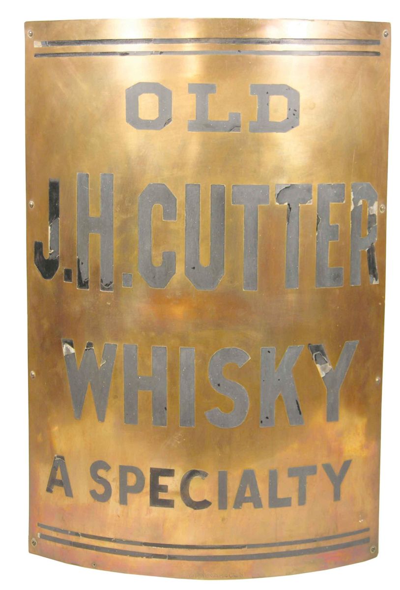 Old J. H. Cutter Whisky, A Specialty, Copper Corner Sign. Very good original condition. 18 1/2 X 24 inches.