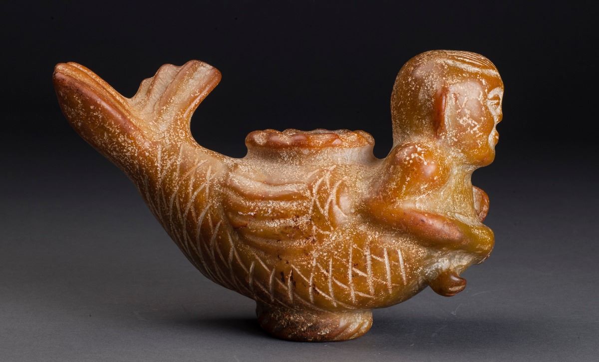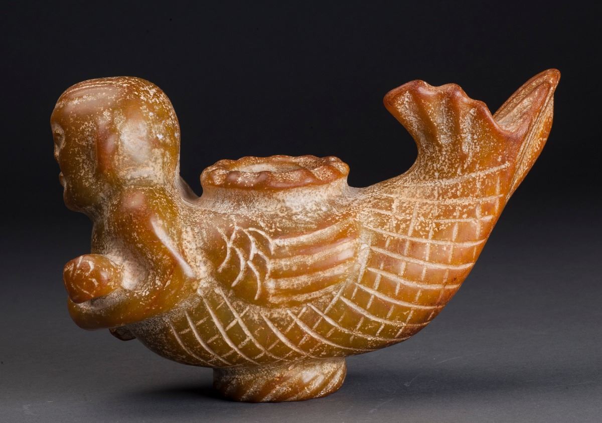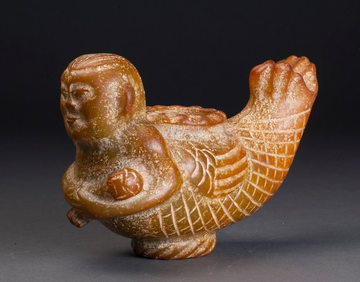This Pot Was Made From Old Jade, Carved As Fish Beauty ; Skilled Carving, Vivid Tone.