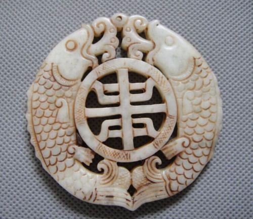 Old Jade Hand Carved Double Fish Pendant........Height:71mm;Width:70mm;Depth:7mm;Weight:47g;