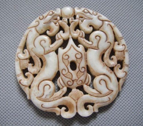 Old Jade Hand Craved Dragon Pendant..........Height:72mm;Width:73mm;Depth:7mm;Weight:52g;