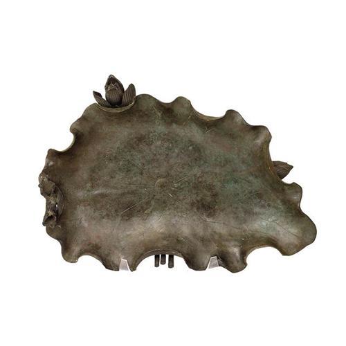 Old (1930's) Japanese Bronze Ikebana Lotus Leaf Tray