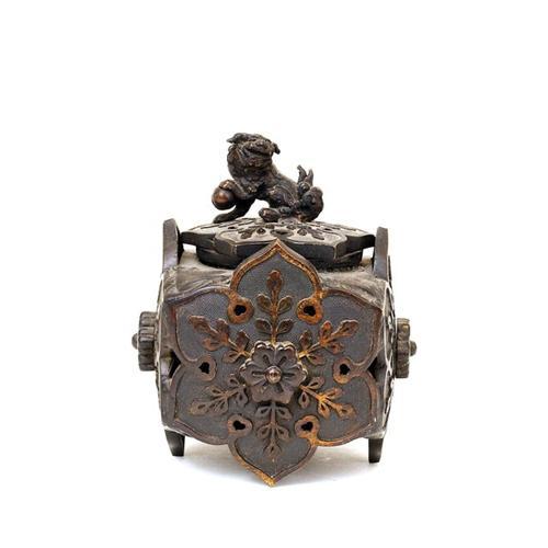 Old (1920's) Japanese Bronze Square Incense Burner with Shishi