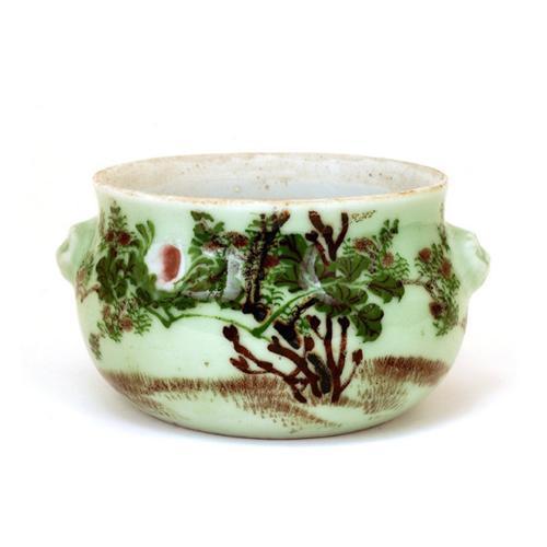 <tr><td><font size="2" face="Arial, Helvetica, sans-serif"><strong><font color="#000033">Title:</font></strong>Old Japanese Celadon Imari Bowl w Fu Lion Ear</font></td></tr>