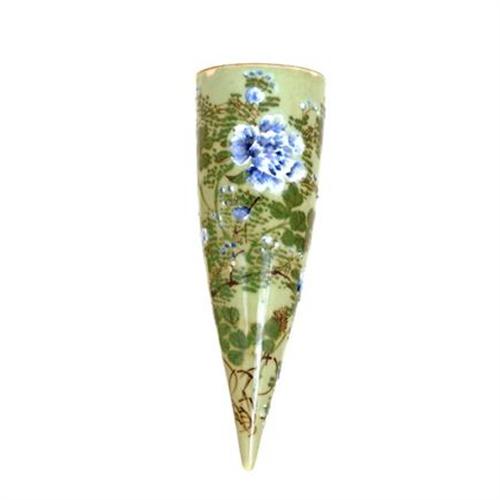Old (1930's) Japanese Celadon Imari Relief Flower Wall Vase
